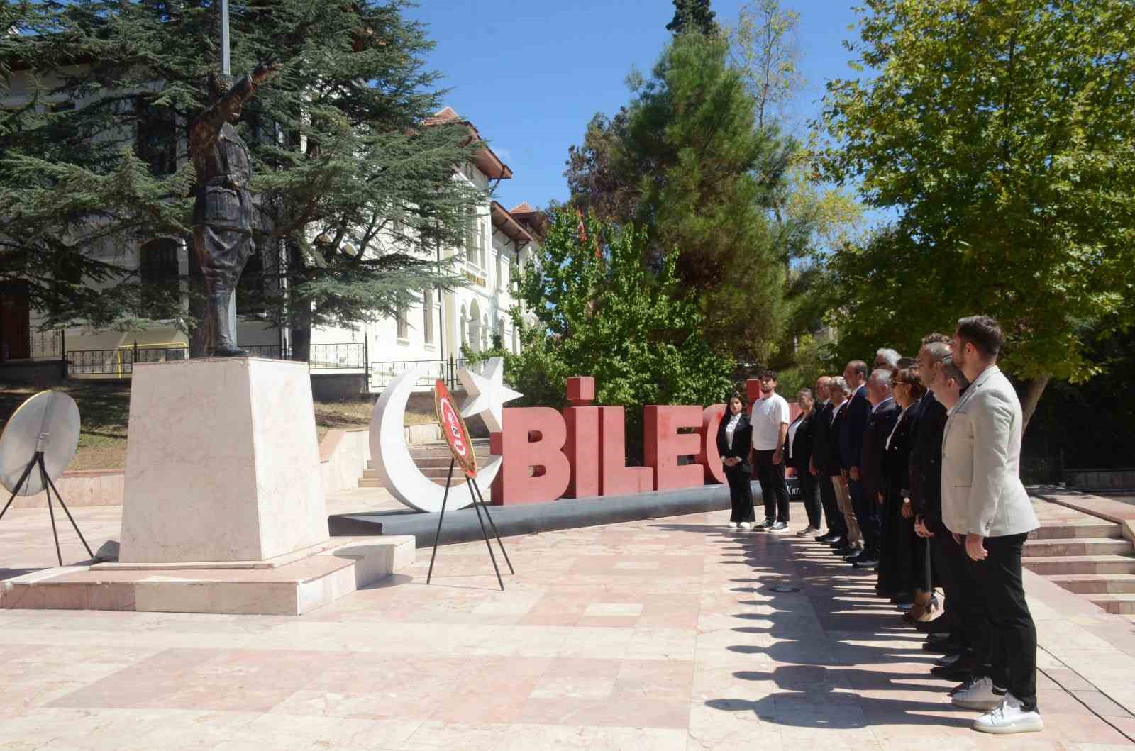 CHP Bilecik İl Örgütü tarafından, partilerin kuruluşunun 101’inci yıl dönümü nedeniyle Cumhuriyet Meydanı’ndaki Atatürk Anıtına çelenk bırakıldı. Burada bir konuşma yapan İl Başkanı Ali Özdemir, “Bugün, Türkiye Cumhuriyeti’nin siyasi tarihinde önemli bir dönüm noktasını temsil eden, Cumhuriyet Halk Partisi’nin kuruluşunun 101’inci yıl dönümünü kutluyoruz. 9 Eylül 1923 tarihinde Mustafa Kemal Atatürk ve silah arkadaşlarının öncülüğünde kurulan Cumhuriyet Halk Partisi, yalnızca bir siyasi parti değil, Cumhuriyetimizin temellerini atan, ülkemizi bağımsız ve çağdaş bir devlet haline getiren mücadelenin siyasal zeminidir. Türkiye’nin demokrasi, özgürlük, adalet ve eşitlik mücadelesinde daima en ön safta yer almış bir halk hareketidir. Laik, çağdaş, duyarlı nesilleri yetiştirmeyi kendine ilke edinmiş bir okuldur. 7’den 77 ye damarlarında Kuva-i Milliye ruhunu taşıyan her Türk vatandaşının buluştuğu çatıdır. Savaştan çıkmış, harap bitap düşmüş bir ülkenin, küllerinden doğup, yoktan var edilişinin mimarıdır. İnönü’de, Dumlupınar’da cepheden cepheye savaşmış, askeri üniformadan başka dışarı çıkacak kıyafeti olmayan, ilk takım elbisesini Sümerbank’tan maaşıyla alan genel başkanların (İsmet Paşa’nın) partisidir CHP. Türk’ün zulüm gördüğü her toprakta biz varız deyip Ayşe’yi tatile çıkaran genel başkanların Ecevit’in partisidir CHP. Sevr’i yırtıp atıp Lozan’ı imzalayanların partisidir CHP. Bugün de ülkemizin içinde bulunduğu zorlu şartlarda, her zaman olduğu gibi halkın yanında duran Adaletsizliğe, yoksulluğa ve haksızlığa karşı sonuna kadar mücadele edenlerin partisidir CHP. Kurulduğu günden bu yana Atamızın deyimiyle kimsesizlerin kimsesi olmuş Cumhuriyetin en büyük koruyucusudur CHP. Türkiye’nin sigortasıdır CHP. CHP yaşadığı sürece bu ülkeye bir şey olmaz korkmayın. Sözlerime son verirken bu özel gün vesilesiyle başta kurucumuz Mustafa Kemal Atatürk olmak üzere, partimize emek vermiş tüm büyüklerimizi rahmet ve minnetle anıyor, bugüne katkı sağlayan tüm partili yol arkadaşlarıma teşekkür ediyorum” dedi.