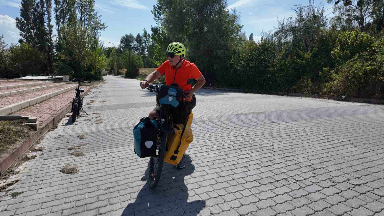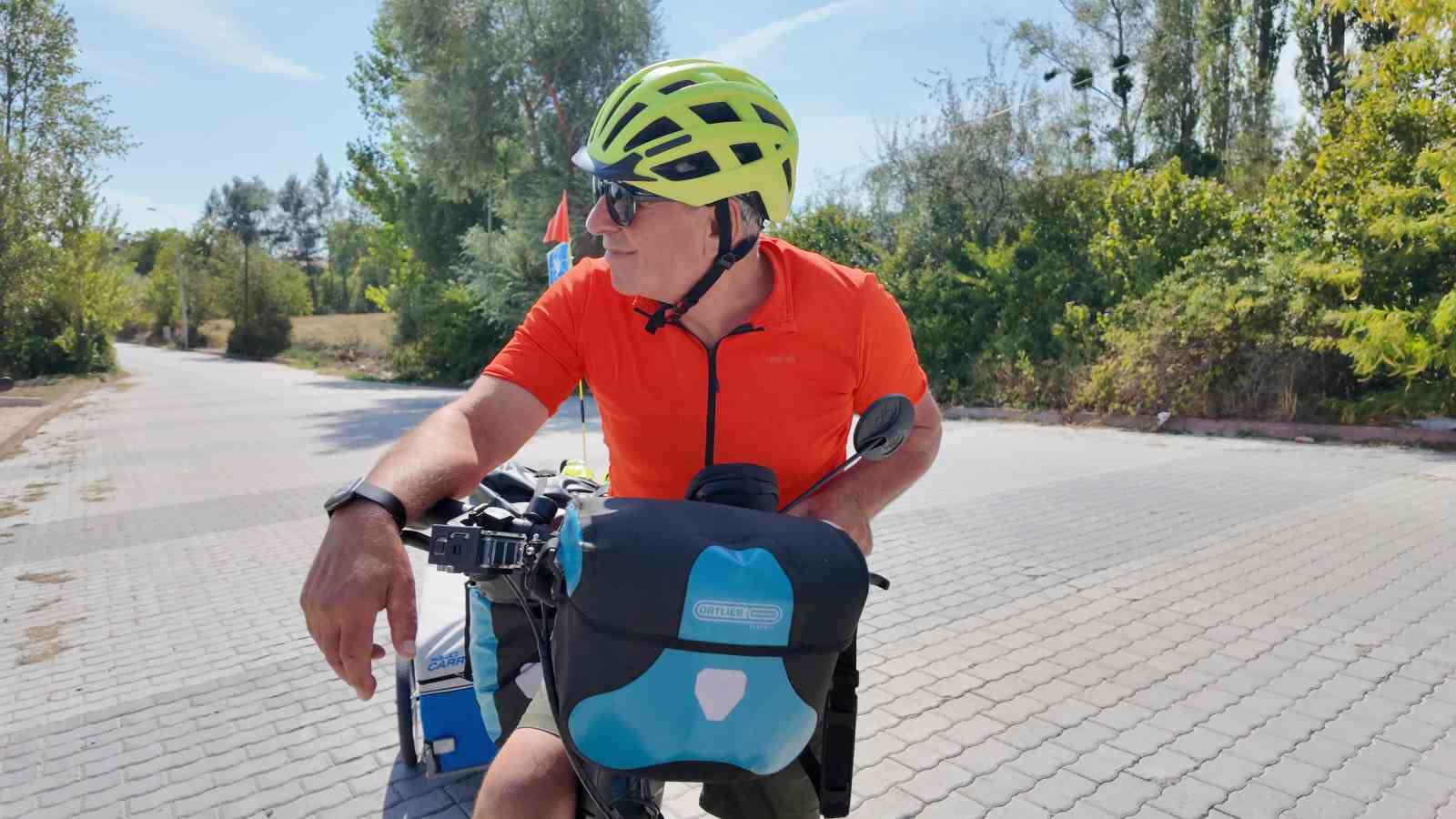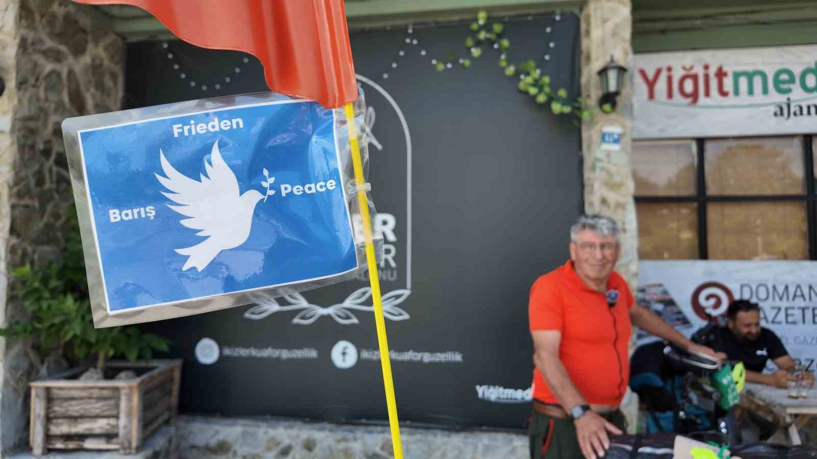 Bisikletinin arkasında taşıdığı barış bayrağı ile dikkat çeken Metin Sert, bu yolculuğunun sadece bir gezi değil, aynı zamanda bir mesaj taşıdığını vurguladı. “Herkes savaş diyor, ben barış diyorum” diyen Sert, Gazze ve Ukrayna’da yaşanan insanlık dışı olaylardan bahsederek, dünyanın son 20 yılda savaşlarla çevrili olduğunu ve barışı savunduğunu ifade etti.