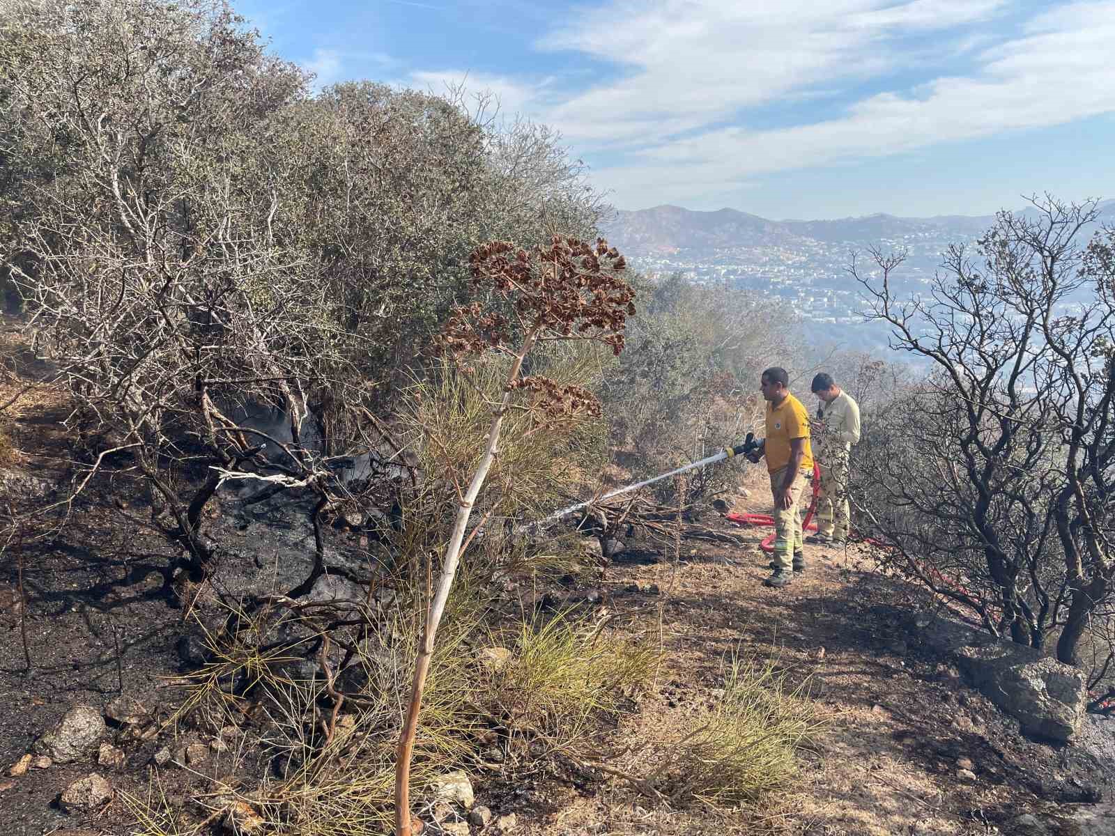 Gümüşlük Mahallesi Burgaz Tepesi’nde öğle saatlerinde bilinmeyen bir nedenle yangın başladı. Rüzgarın etkisiyle alevler geniş bir alana yayıldı. İhbarın ardından itfaiye ve orman ekibi, bölgeye hareket etti. Karadan ulaşımın zor olduğu yangına havadan da 2 uçakla müdahale edildi.