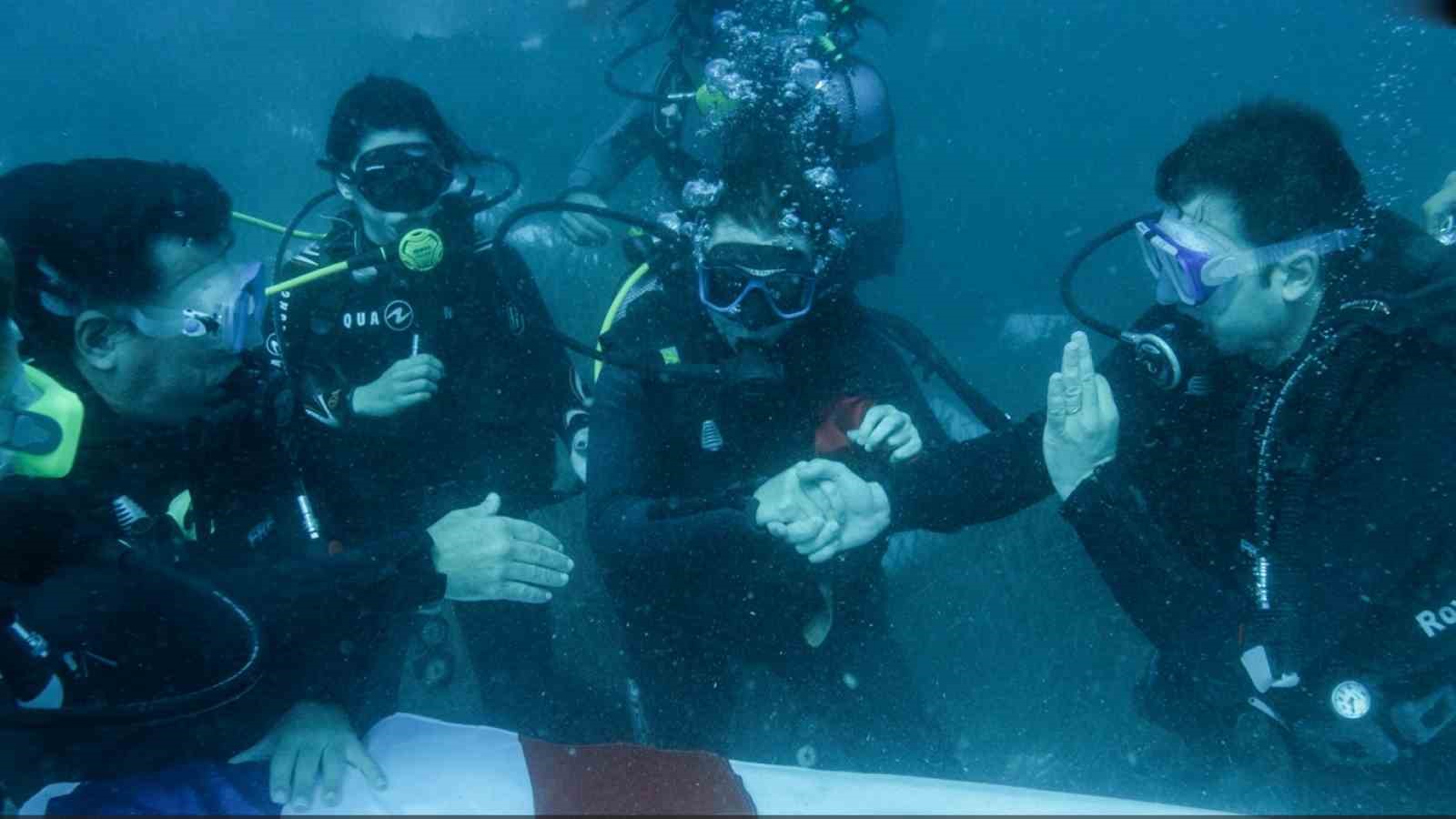 Muğla Büyükşehir Belediye Başkanı Ahmet Aras, Fransa’nın Türkiye Büyükelçisi İsabelle Dupont ve Bodrum Belediye Başkanı Tamer Mandalinci’nin de aralarında bulunduğu protokol üyeleri, suyun altında kurdele keserek projeye imza attı. Denizin derinliklerindeki sanat eserleri, sualtı kameralarıyla canlı olarak kaydedildi.