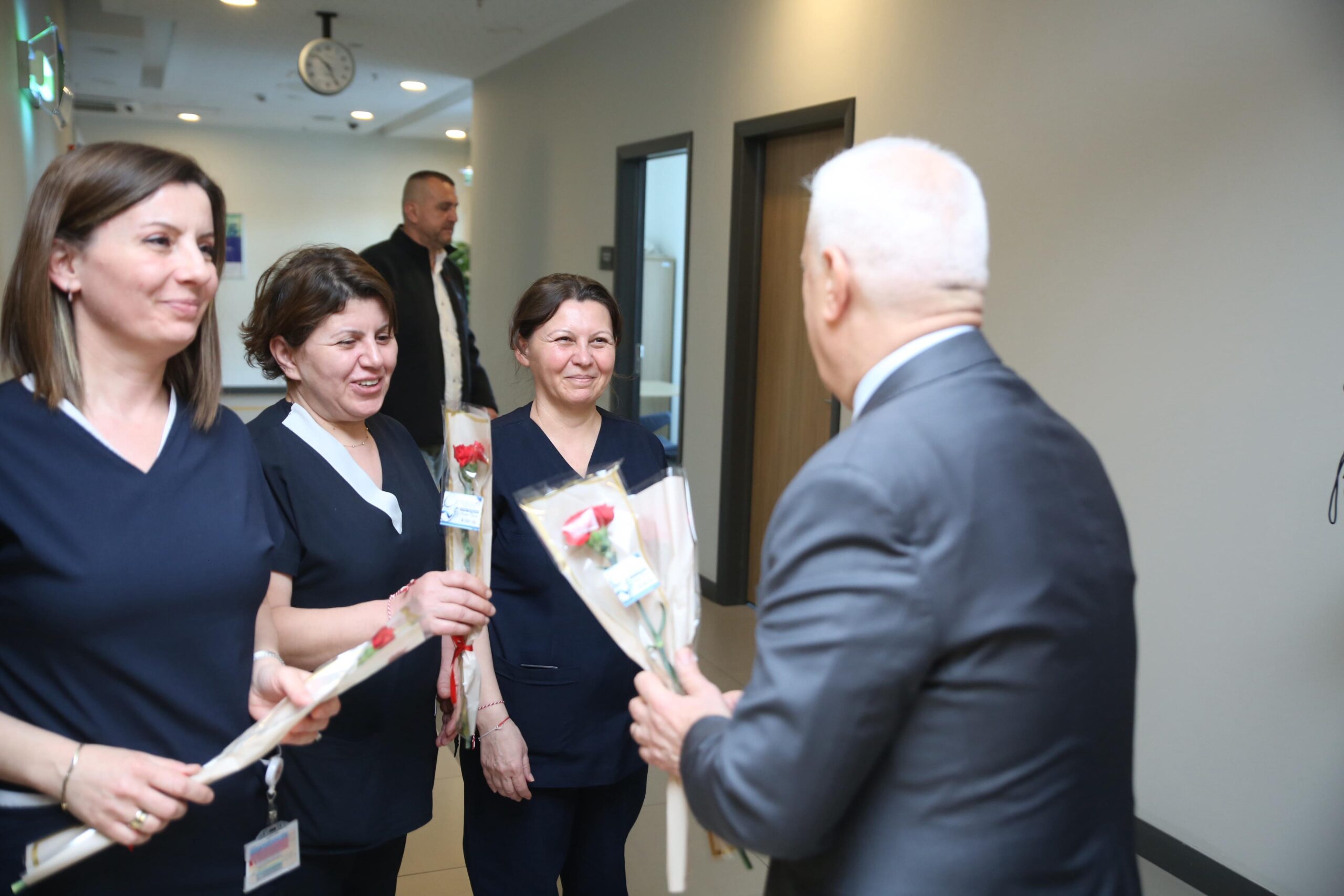 Bursa Büyükşehir Belediye Başkanı Mustafa Bozbey, Bursa Şehir Hastanesi’ni ziyaret ederek, doktorların 14 Mart Tıp Bayramı’nı kutladı.