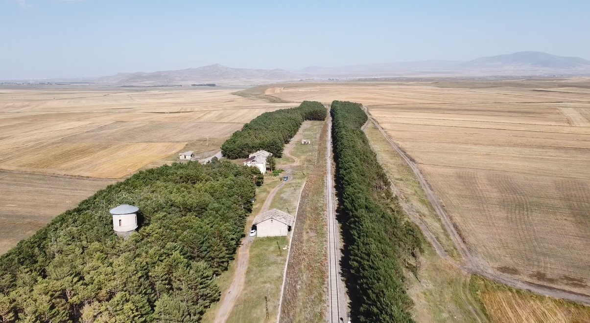 TCDD tarafından 1969 yılında Doğu Anadolu’daki tren yolları ile tren istasyonları çevresine yoğun kar yağışının rayları olumsuz etkilemesini engellemek amacıyla dikilen yaklaşık 20 bin çam ağacı 4 mevsim bir başka güzelliğe bürünüyor. Çam ağaçlarının yeşili, tarım arazilerinin kahverengi ve sarı renkleriyle birleşmesiyle ortaya çıkan kartpostallık görüntüler dronla kaydedildi.