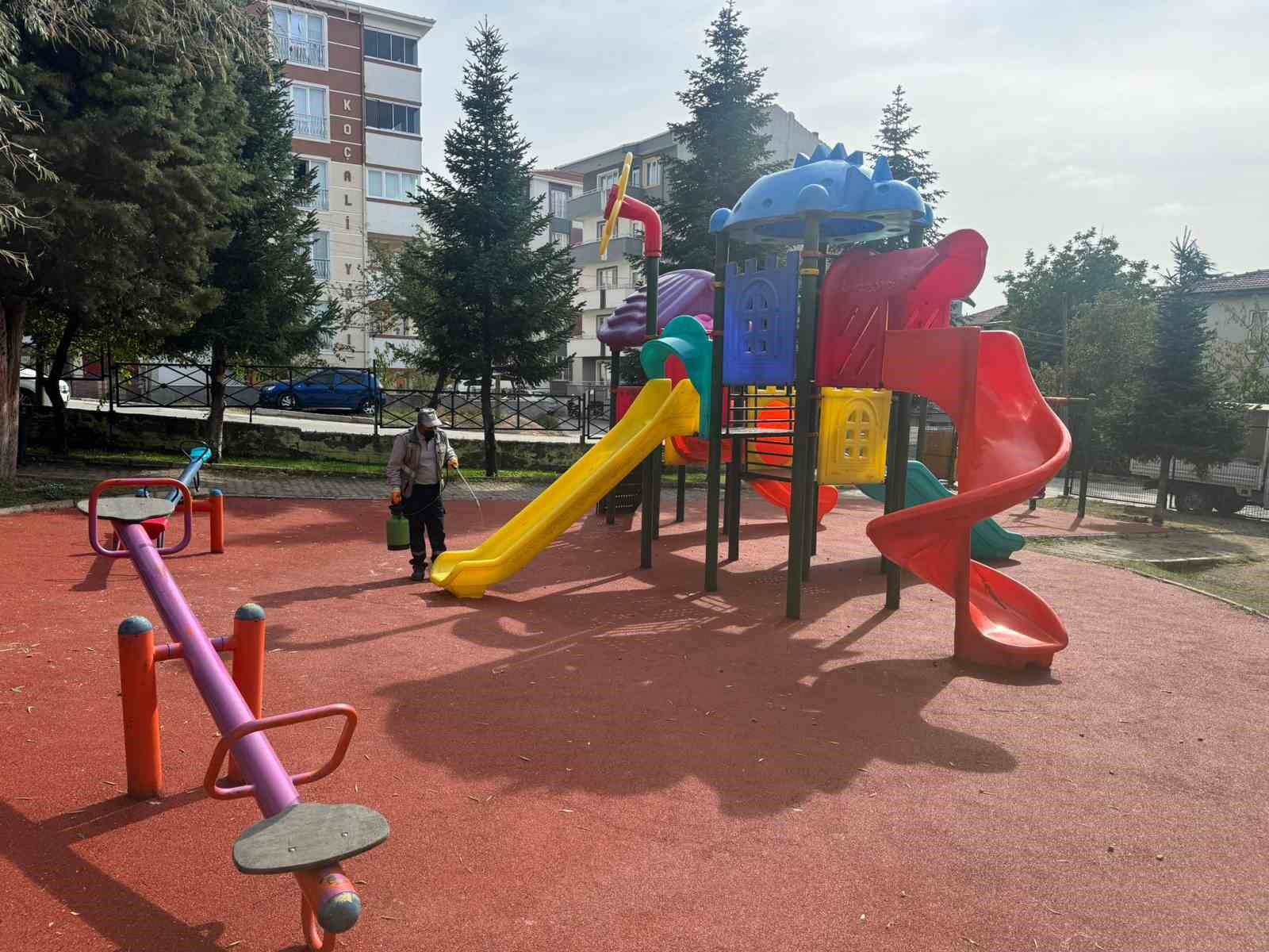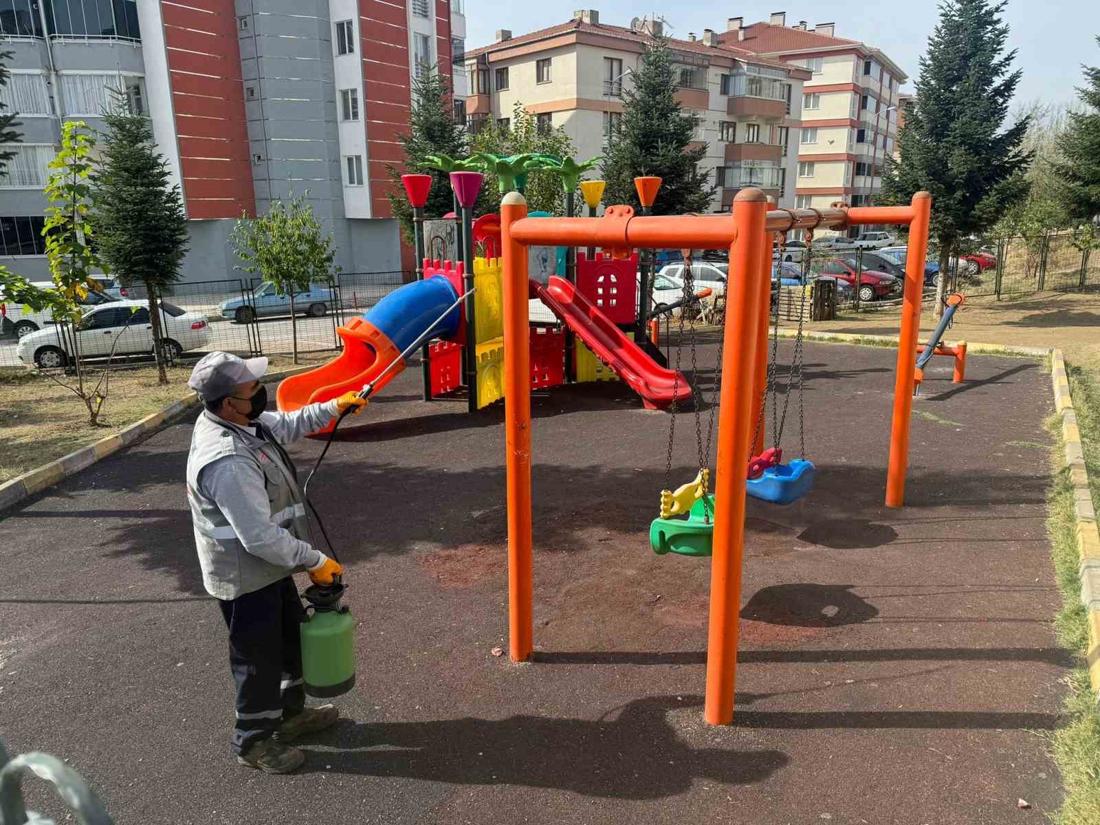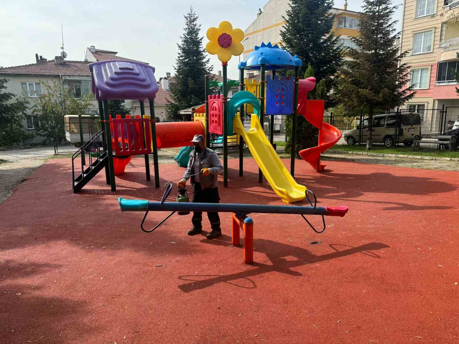 Bozüyük Belediyesi, çocuklara daha sağlıklı bir eğlence alanı oluşturmak amacıyla, parklardaki oyun gruplarının temizlik ve dezenfeksiyon çalışmalarına devam ediyor.