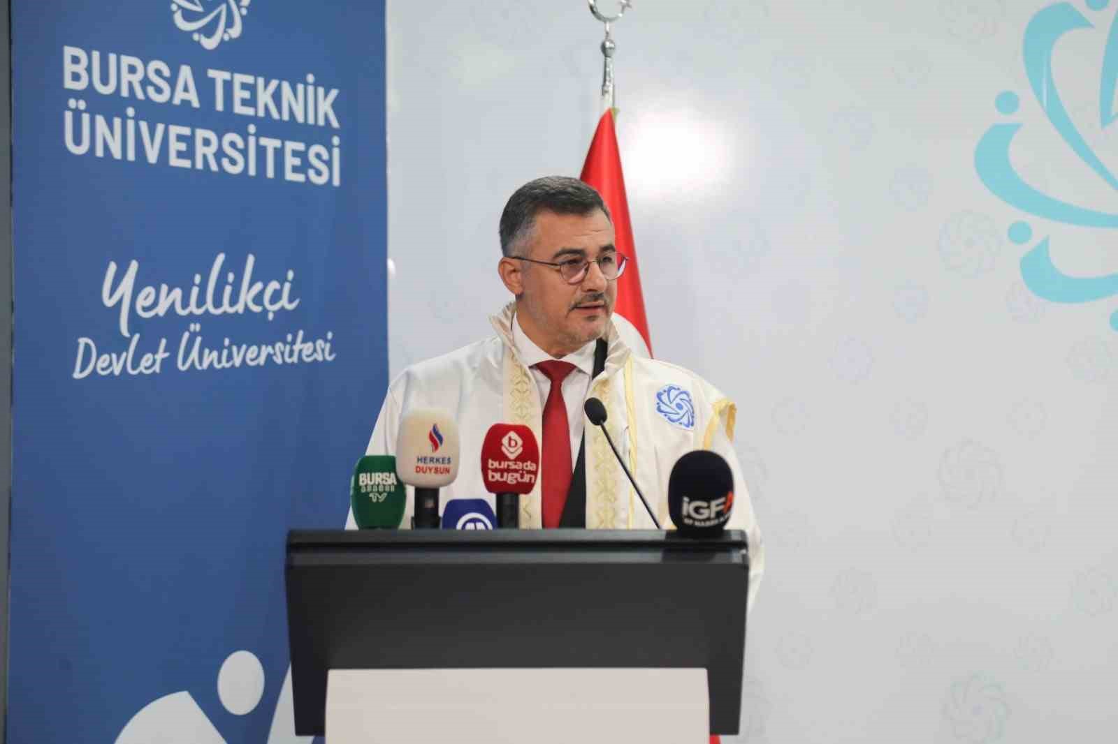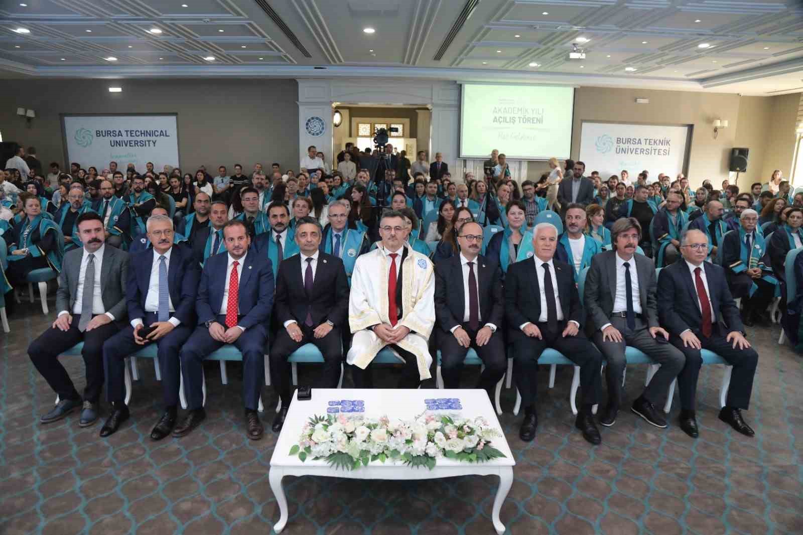 Bursa Teknik Üniversitesi 2024-2025 Akademik Yılı, Mimar Sinan Yerleşkesi Turkuaz Salon’da düzenlenen törenle başladı. Törene; AK Parti Bursa Milletvekilleri Refik Özen ve Osman Mesten, Bursa Büyükşehir Belediye Başkanı Mustafa Bozbey, Savunma Sanayii Başkanlığı Başkan Yardımcısı Prof. Dr. Hakan Karataş, Bursa Cumhuriyet Başsavcısı Ramazan Solmaz, Bursa Adli Yargı Mahkemesi Adalet Komisyonu Başkanı Ömer Gülmüş, Bursa Bölge Adliye Mahkemesi Başkanı Abdulkadir Şahin, Bursa Bölge Adliye Mahkemesi Cumhuriyet Başsavcısı, Sadık Bölek, Bursa Uludağ Üniversitesi Rektörü Prof. Dr. Ferudun Yılmaz, Mudanya Üniversitesi Rektörü Prof. Dr. Emin Karip, Bursa Vali Yardımcısı Salih Altun, Yıldırım Kaymakamı Metin Esen, Gürsu Kaymakamı Naif Yavuz, Yıldırım Belediye Başkanı Oktay Yılmaz, akademisyenler ve öğrenciler katıldı.