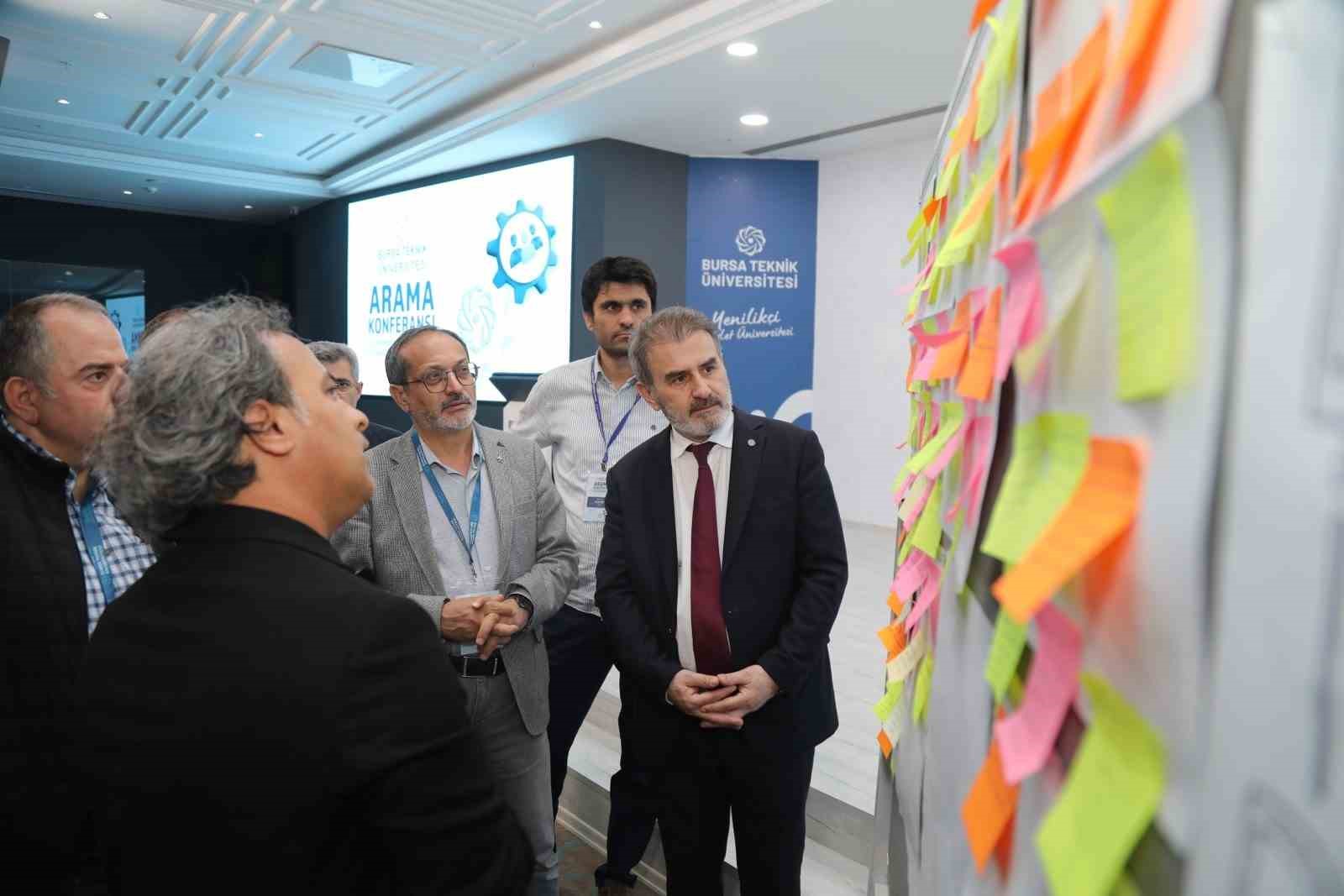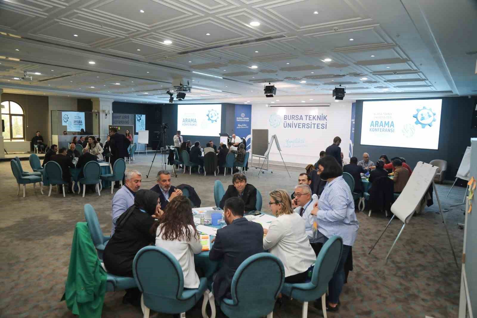 Bursa Teknik Üniversitesinin 2030 yılı ve sonrası için yol haritasını belirlemek amacıyla kamu, STK, özel sektör ve akademi dünyasından iç ve dış paydaşların katılımlarıyla 19-20 Nisan 2024 tarihlerinde “BTÜ Arama Konferansı” düzenlendi. Yükseköğretim Kurulu (YÖK)BaşkanıProf. Dr. Erol Özvar’ın da katıldığı Arama Konferası’nda iki gün boyunca,BTÜ’nün yol haritasını belirlemek üzere 5 odak çalışma grubunda fikirler münazara edildi. “Yükseköğretimde Liderlik, Yönetim, Kalite”,“Eğitim ve Öğretim”, “Araştırma ve Geliştirme”, “Uluslararasılaşma” ve “Toplumsal Katkı” konu başlıkları BTÜ açısından her odak grubu tarafından masaya yatırtıldı. Bu çerçevede ilk grup; liderlik, yönetişim ve kalite sistemine dair önerilerini sundu. Tartışmalar neticesinde bu alana yönelik BTÜ’de, yönetici yetkinlik izleme ofisinin kurulması, rotasyon uygulaması, dijital yol haritasının oluşturularak dijital yönetim ortamlarının oluşturulması, sektör öncüleri için bilgi üretim merkezi oluşturulması gibi öneriler fikir tepsisinde toplandı.