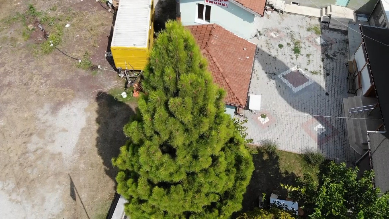 Bölgedeki Ehrami karaçamları, dronla havadan da görüntülendi.