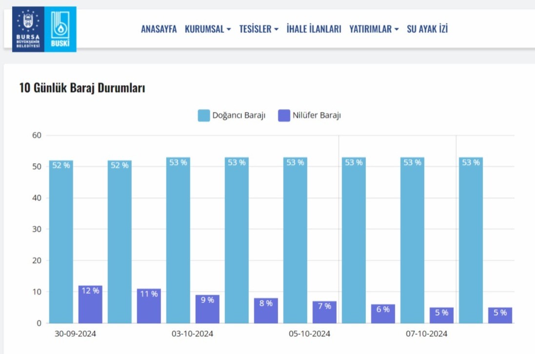 Bursa Büyükşehir Belediye Başkanı Mustafa Bozbey, bu yıl yaşanması beklenen su sıkıntısı ile ilgili olarak “Buharlaşma ve hızlı kurak su konusunda önlem alınmasını gerektiriyor. Bir yandan biz gerekli önlemleri alırken, diğer yandan Bursalılar’dan suyu tasarruflu kullanmalarını bekliyoruz. 2026 yılı ortalarından itibaren baraj bağlantısını yapacağız ve isale hattının tamamlanmasıyla 2060 yılına kadar su sorununu çözeceğiz.” diye konuştu.