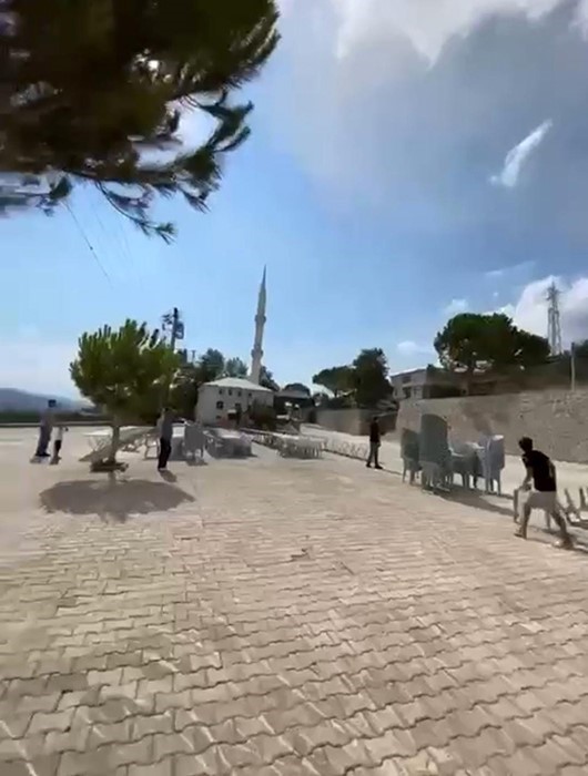 Bursa’nın Yenişehir ilçesinde çıkan hortum korku dolu anlar yaşattı. Etkinlik için meydana koyulan sandalyeler havada uçuşurken, o anlar kameraya yansıdı.
