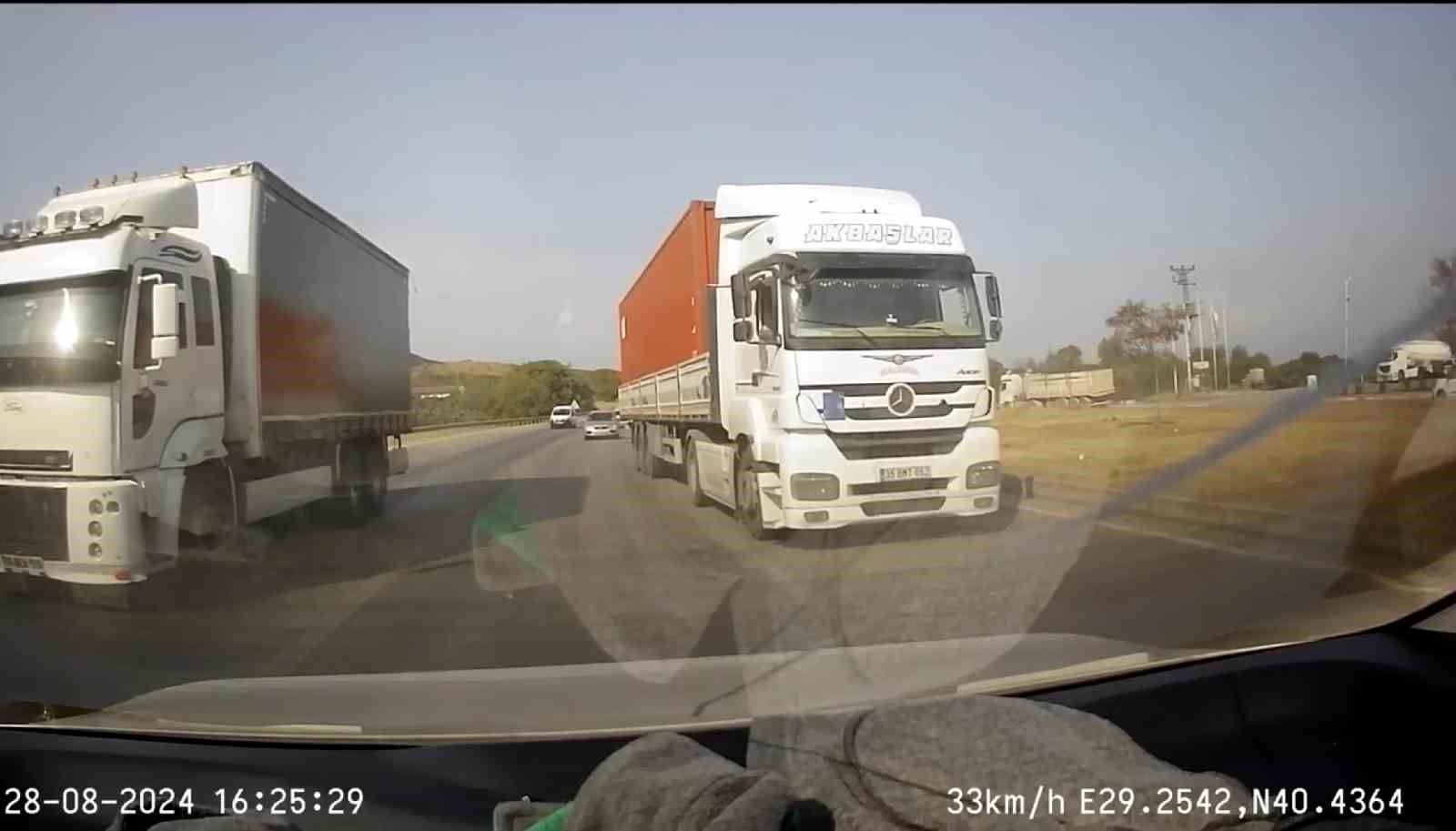 Bursa’da anayolda seyreden tır tehlike saçtı. O anlar trafikte seyreden başka bir aracın güvenlik kamerasına yansıdı.