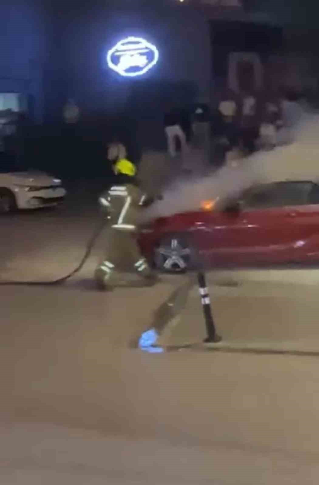 Edinilen bilgiye göre, Podyumpark Eğlence Merkez’inin açık otoparkında bulunan lüks otomobilin motor kısmından alev çıkmaya başladı. Hızla büyüyen alevler, kısa sürede aracın kaput kısmını sararken, çevredekiler hemen 112 ekiplerine bilgi verdi. Olay yerine gelen itfaiye ekipleri yangını kısa sürede söndürerek çevredeki araçların zarar görmesini engelledi. Olayla ilgili tahkikat başlatıldı.