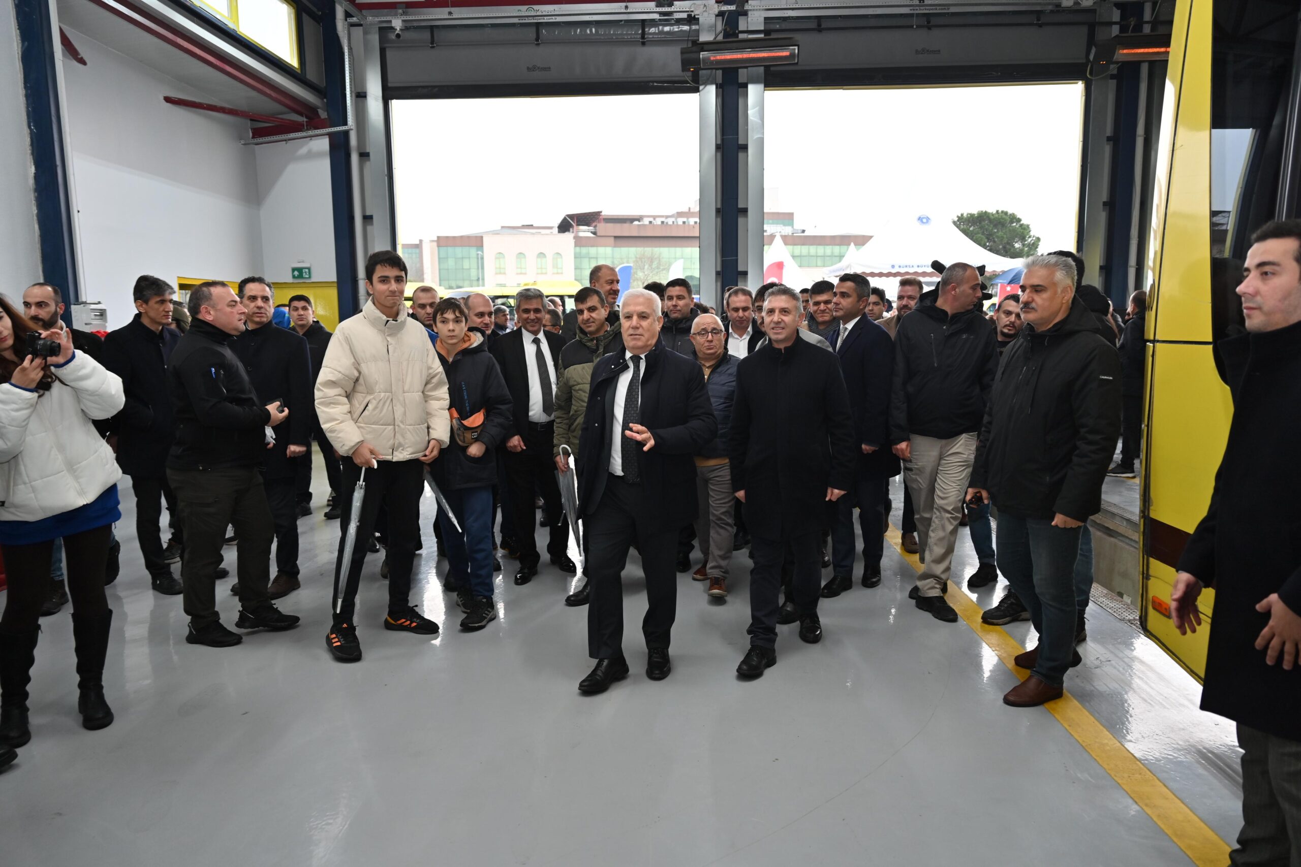Mimar Sinan Otobüs Garajı’nda düzenlenen törene Büyükşehir Belediye Başkanı Mustafa Bozbey’in yanı sıra Büyükşehir Belediyesi Genel Sekreteri Doç. Dr. Ergül Halisçelik, BESOB Başkanı Fahrettin Bilgit, Genel Sekreter Yardımcıları Mehmet Emin Direkçi ve Mehmet Tözün Bingöl, Burulaş Genel Müdürü Fahrettin Beşli, daire başkanları, oda başkanları ve çok sayıda esnaf katıldı.