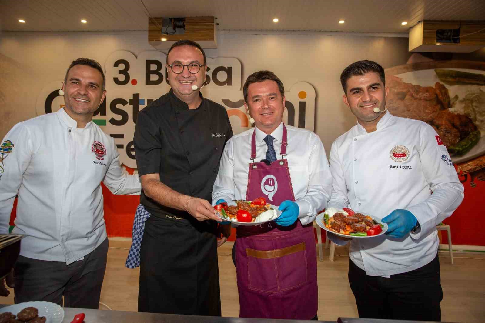 Bursa Büyükşehir Belediyesi tarafından 13-14-15 Eylül tarihlerinde Merinos Parkı’nda düzenlenecek olan 3. Bursa Gastronomi Festivali’nin heyecanı erken başladı. Festival öncesinde Bursa’nın lezzetlerini ilçelerle buluşturmak ve Bursalıları festivale davet etmek adına Büyükşehir Belediyesi iştiraklerinden Kültür AŞ. tarafından özenle hazırlanan ‘Gastronomi Tırı’, yola çıktı. İlk durak Osmangazi Kent Meydanı oldu. Büyükşehir Belediyesi Başkan Vekili Mehmet Aydın Saldız’ın da katıldığı renkli etkinlikte Osmangazi Belediye Başkanı Erkan Aydın, ‘Mobil Bursa Gastronomi Mutfağı’nda Şef Dr. Esat Özata ile birlikte ‘Pideli Köfte’ yaptı. Ünlü Şef Özata ve Aydın’ın birlikte yemek yaptığı anlar vatandaşlar tarafından ilgi ile takip edildi. Etkinliğin sonunda vatandaşlar tadım deneyiminde bulunurken ortaya çıkan ürünler tam not aldı.