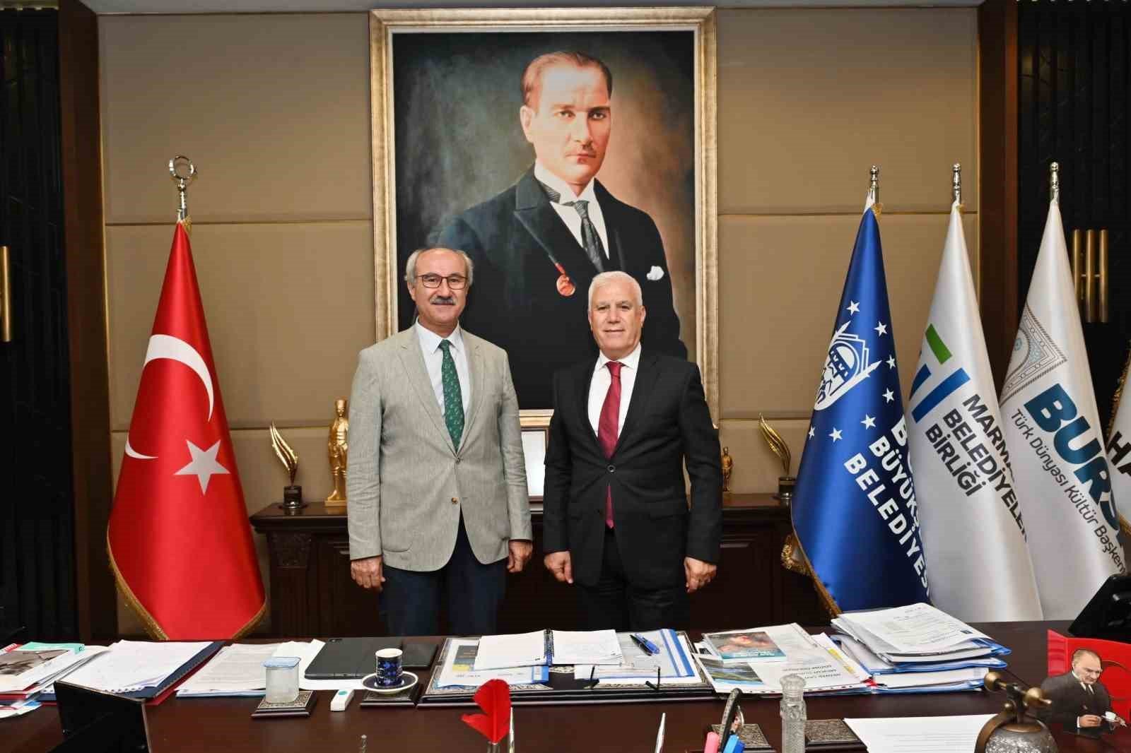 Bursa Büyükşehir Belediye Başkanı Mustafa Bozbey, Bandırma Onyedi Eylül Üniversitesi Denizcilik Fakültesi Öğretim Üyesi Prof. Dr. Mustafa Sarı’yı makamında kabul ederek Nilüfer Çayı’nın temizlenmesi konusunda görüş alışverişinde bulundu.