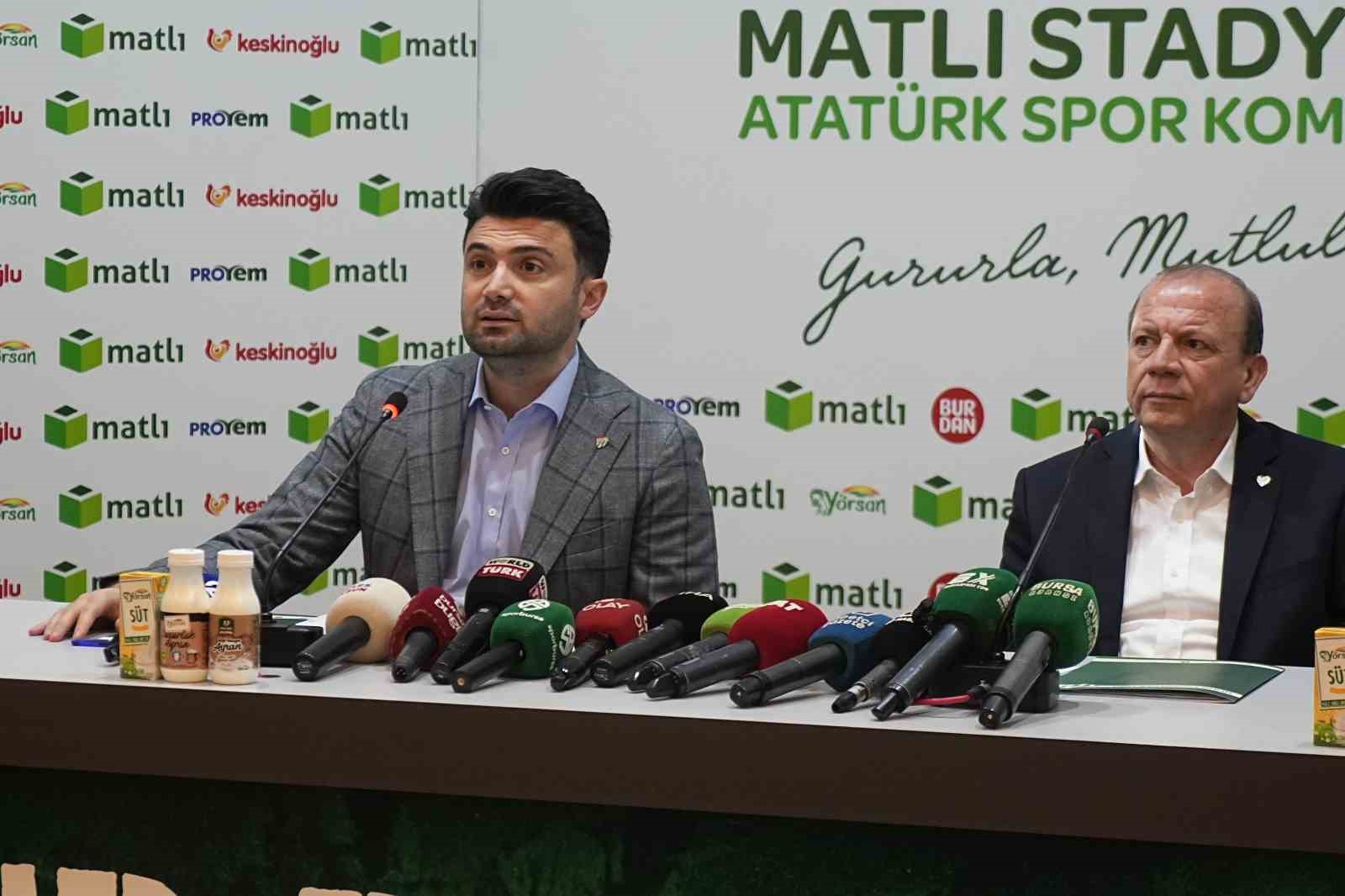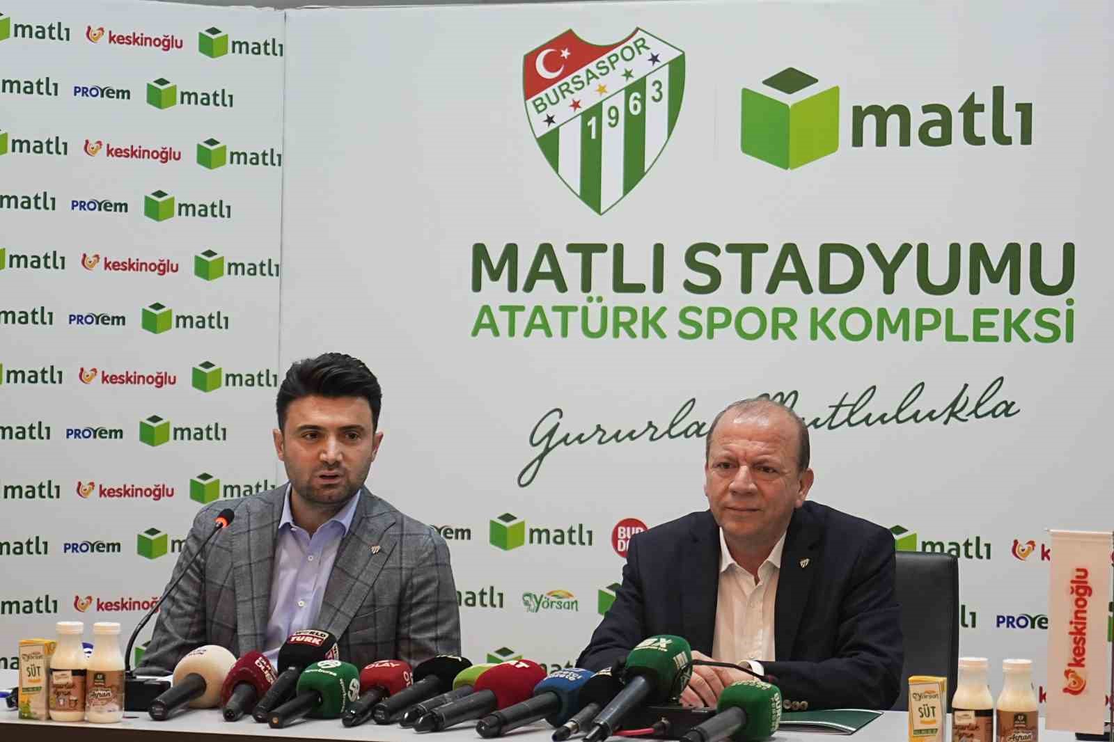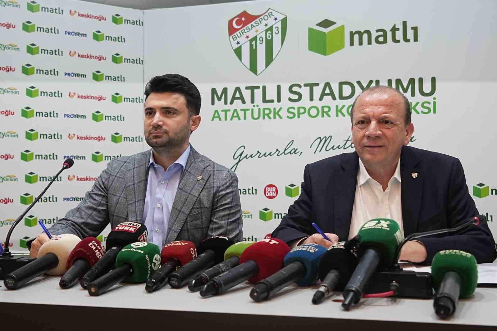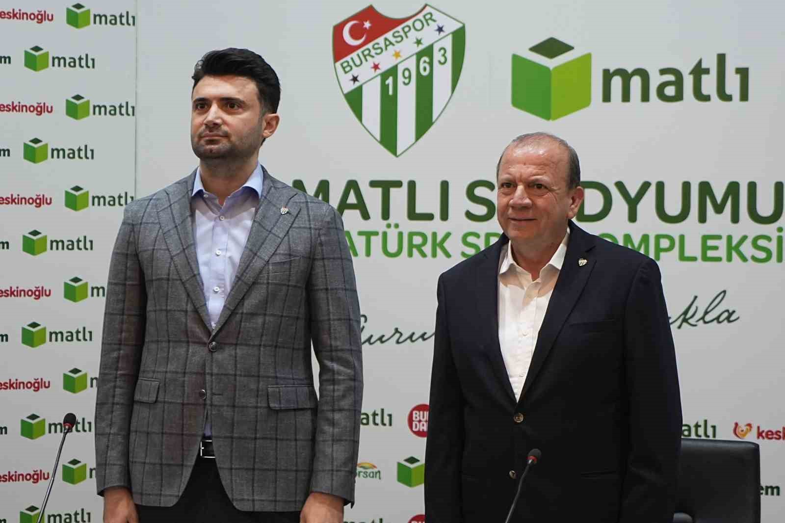 Bursaspor Kulübü’nün futbol maçlarını oynadığı stadyumun isim sponsoru değişti. Yapılan anlaşma sonucu stadyumun yeni ismi, Atatürk Spor Kompleksi Matlı Stadyumu olarak belirlendi. Özlüce İbrahim Yazıcı Tesisleri’nde düzenlenen toplantıya, Bursaspor Başkanı Enes Çelik, Matlı Yönetim Kurulu Başkanı Özer Matlı ve basın mensupları katıldı.