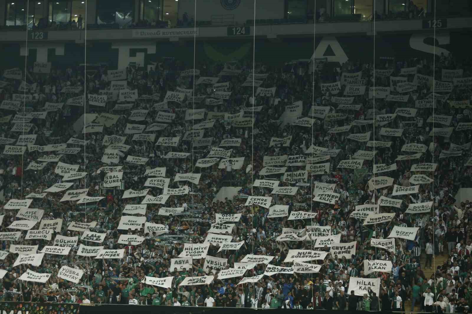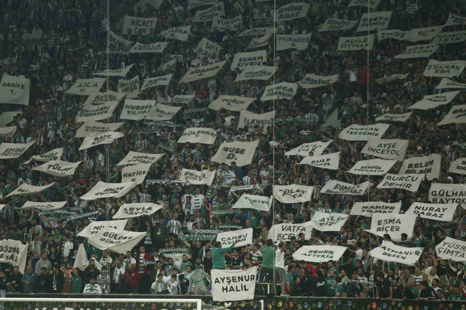 TFF 3. Lig’in 6. haftasında mücadele eden Bursaspor, sahasında Kahramanmaraşspor’u ağırladı. Maç öncesi taraftarlar, öldürülen kadınların isimlerinin yazdığı pankartları açtı.