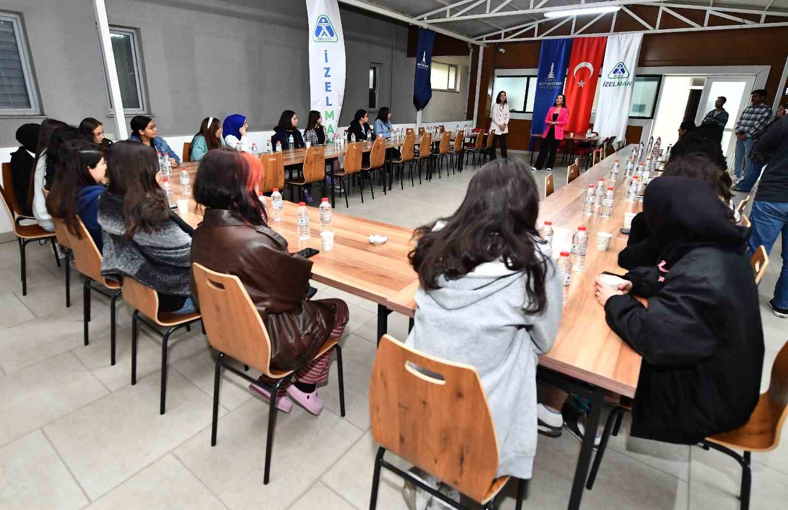 Kız öğrenciler ile bir araya gelen İzmir Büyükşehir Belediyesi Gençlik ve Spor Hizmetleri Daire Başkanlığı’na bağlı Gençlik Çalışmaları Şube Müdürü Pınar Akbaş, “Gençlik Çalışmaları Şube Müdürlüğü olarak kentteki gençlere yönelik birtakım projeler yürütüyoruz. Gençlere, projelerimize dâhil olmaları yönünde teşvikte bulunuyoruz. Kenti tanımaları için kent gezileri yapıyoruz. Kendilerini geliştirmeleri için eğitim programlarımıza, atölyelerimize katılmalarını sağlıyoruz. Gençler ile bağımızı koparmıyoruz. Özetle, gençlere barınma imkânı sağlayıp onları sosyal tesise yerleştirmekle kalmıyoruz. Belediyemizin sunduğu bütün hizmetlere erişimi de kolaylaştırıyoruz” ifadelerini kullandı.