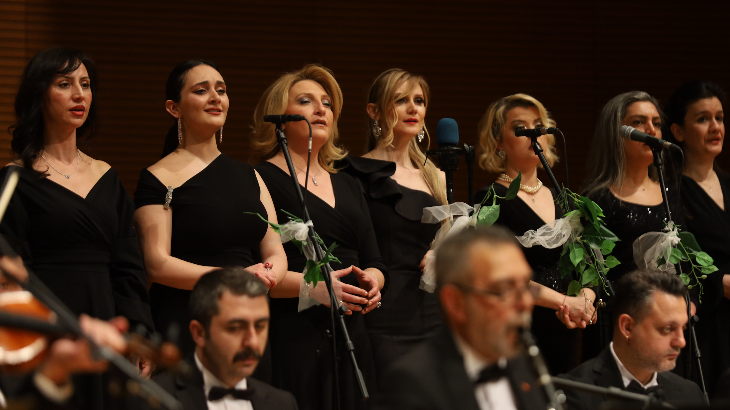 Bursa Büyükşehir Belediyesi Orkestra Şube Müdürlüğü, Dünya Kadınlar Günü’nü anlamlı bir etkinlikle kutladı. Türk Sanat Müziği Bölümü tarafından düzenlenen ‘Kadınlar Şarkı Söylüyor’ konseri, Bursa’da 8 Mart akşamını şarkılarla süsledi. Merinos Atatürk Kongre ve Kültür Merkezi’nde gerçekleştirilen konsere, Bursalı sanatseverler yoğun ilgi gösterdi. Şef Ayşe Sağlam’ın yönetimindeki konserde, Türk Sanat Müziği’nin önemli kadın bestekarlarına ait eserler, kadın müzisyenlerin sesleriyle hayat buldu. Türk Sanat Müziği Bölümü kadın sanatçıları, solo ve koro halinde seslendirdikleri birbirinden güzel sanat müziği eserleriyle sanatseverlere keyifli bir akşam yaşattı. Konserin sonunda Şef Ayşe Sağlam’a günün anısına çiçek takdim edildi.