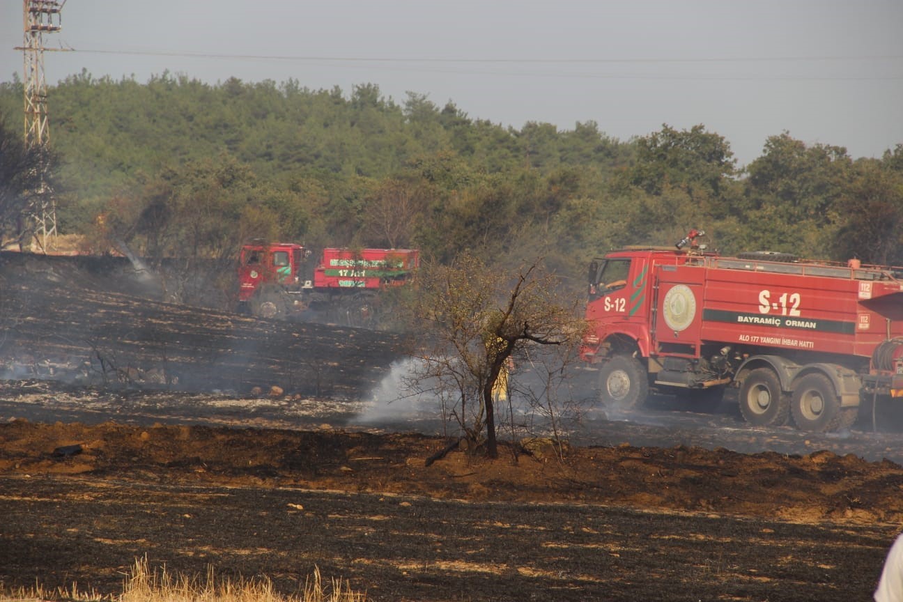Çanakkale’nin Bayramiç ilçesi Yeniköy köyünde tarlada başlayan yangın ormanlık alana sıçramadan karadan ve havadan yapılan müdahalelerle kontrol altına alındı.