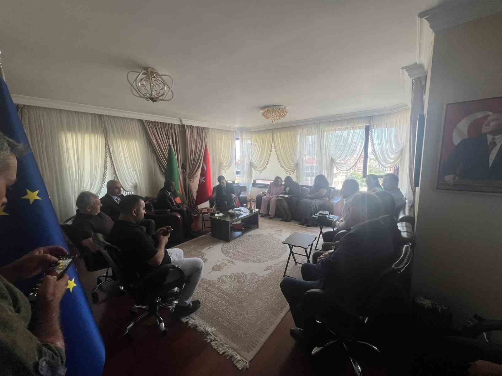 Zambiya Cumhuriyeti Ankara Büyükelçisi Lt. Gen. Dr. Wıllıam M. Sıkazwe ve diplomatlar, Sanayi ve Ticaret Konfederasyonu (SANKON) Genel Merkezi’ni ziyaret etti. Ziyaretten duyduğu memnuniyeti dile getiren SANKON Genel Başkanı Ferudun Cevahiroğlu, “Zambiya Cumhuriyeti Ankara Büyükelçisi olarak şahsınızı ve değerli diplomatlarınızı SANKON Genel Merkezi’nde görmekten dolayı çok mutluyuz. Türkiye Cumhuriyeti ile Zambiya Cumhuriyeti arasında ekonomik ve ticari ilişkiler her geçen gün artmaktadır” dedi.