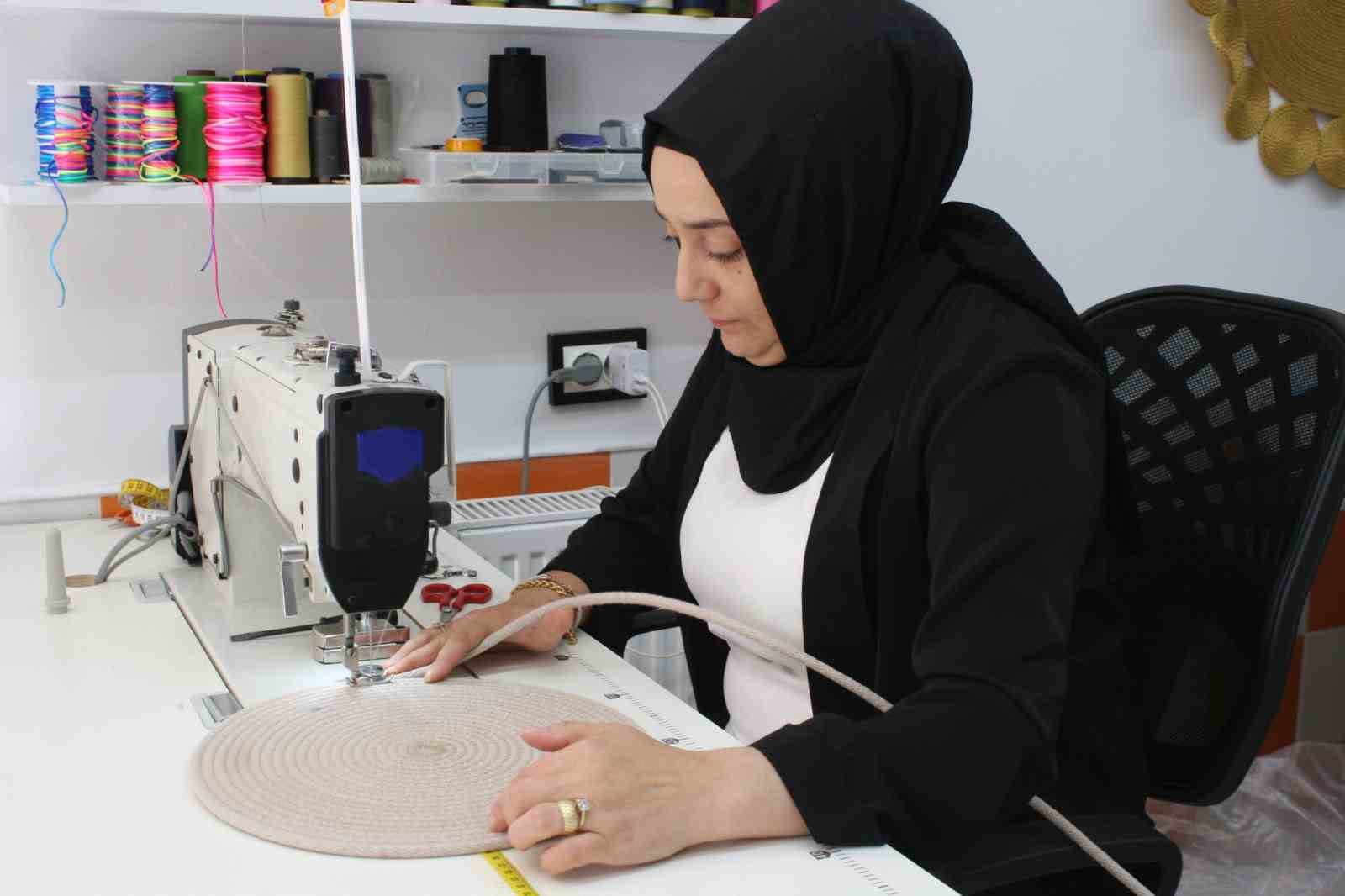 Aile ekonomisine katkı sağlamak için evinde neler yapabileceği konusunda internette araştırma yaptığını belirten Dilek Çağlar, izlediği videolarda jüt ve tres ipler ile çeşitli ürünlerin yapılışını öğrendikten sonra evinde bu ürünleri yapmaya başladığını söyledi. Zamanla işlerinin büyüdüğünü söyleyen Çağlar, ürünlerini ilçede açtığı dükkanında ve sosyal medya üzerinden sattığını belirtti. Hedefinin ev hanımları iş imkanı sunmak olduğunu aktaran Dilek Çağlar, “Bir buçuk yıl öncesine kadar güvenlik şirketinde çalışıyordum. 3’üncü hamilelikten sonra evde kalmak zorunda oldum. Çocuklarla ilgilenirken eşime destek olmak amaçlı ’Ne yapabilirim’ diye araştırırken bu işle karşılaştım. Bazı internet sitelerinde izlediğim videolarla işi ilerlettim. Çantalar, paspaslar, banyo setleri, Amerikan servisleri derken iş büyüdü. Daha da güzel yerlere geldi. Çevremden ’Bu iş olmaz, burada yapamazsın, ilçe olarak küçük satışların kısıtlı olur’ gibi tepkilerle karşılaştım ama hepsini arkaya atmayı başardım. Şu an yurt dışına satışlarım mevcut. Almanya, İngiltere, Fransa, Mısır, Irak olmak üzere ülkelere ürün göndermiş bulunmaktayım. İşimi seviyorum. Hedefim ev kadınlarına destek olabilmek. Ev kadınların yaptığı ürünlerin burada satışını sağlamak. Makineler alıp onlara iş imkanı sunmak. Ev hanımlarına önerim var. Korkmasınlar. Herkes yapabilir. Yapabilirim demek çok önemli. Özgüvenleri yerinde olsun. Kadının değdiği her şey güzelleşir ve gelin herkes özgüveniyle bu dünyayı güzelleştirelim” dedi.
