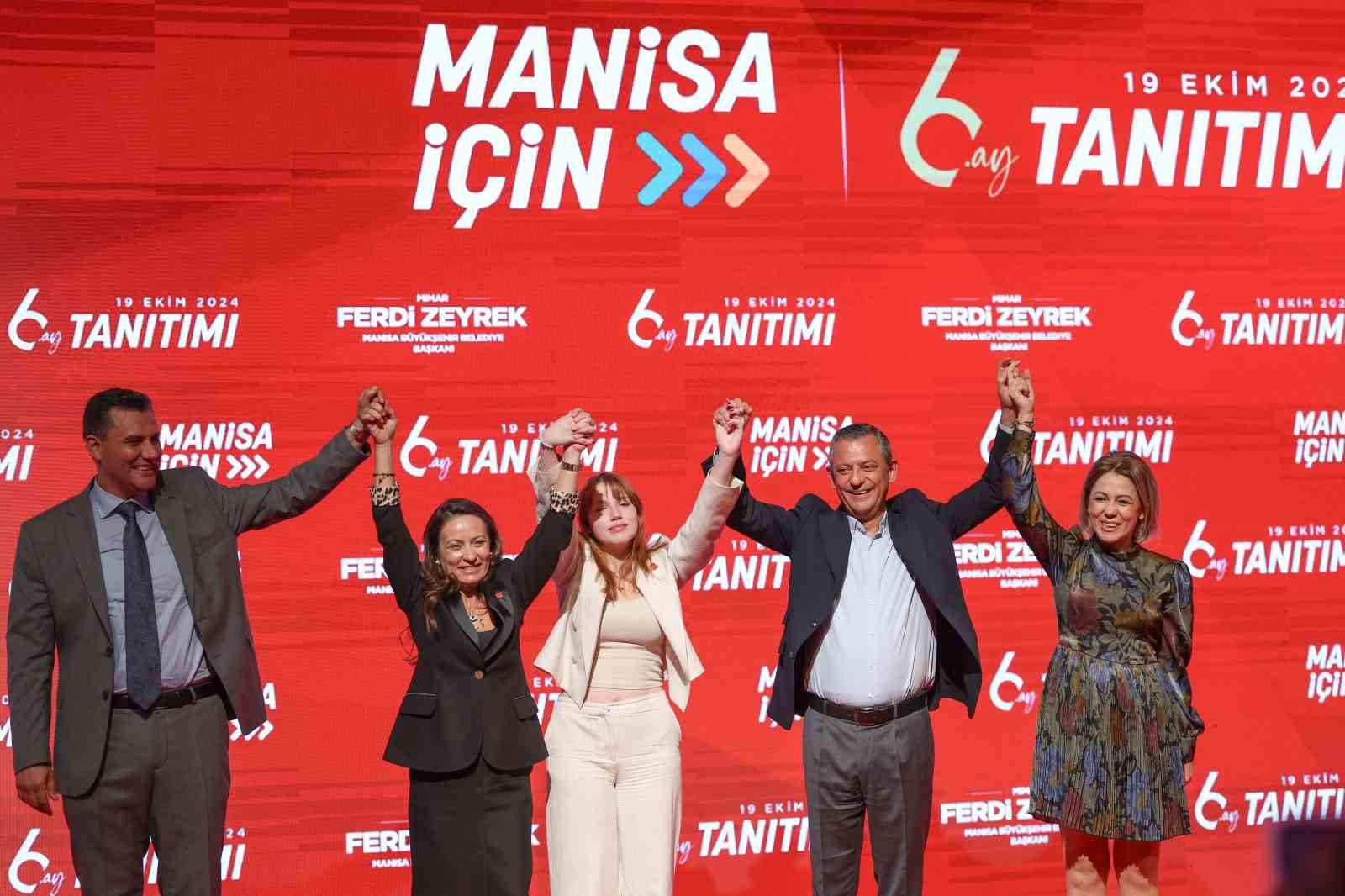 CHP Genel Başkanı Özgür Özel, Manisa’da Büyükşehir Belediye Başkanı Ferdi Zeyrek’in ilk 6 ayda hayata geçirilen projeler ve gelecek yol haritasının paylaşıldığı programa katıldı. Gündemdeki önemli konular hakkında değerlendirmelerde bulunan Özel, “Böylesi güzel bir akşamda kendi memleketimde bir rüyanın gerçek olmasından altı ay sonra ama bu rüyanın gerçeğe dönüştüğünü ve hayal ötesine geçerek gerçekleştiğini büyük memnuniyetle, kıvançla, Ferdi başkanımızla, ekibiyle, belediye meclis grubumuzla, Manisa Büyükşehir Belediyesi’nin tüm çalışanlarıyla gurur duyarak izledim. Hepinize Teşekkür ediyorum. Elinize, emeğinize, yüreğinize sağlık” dedi.