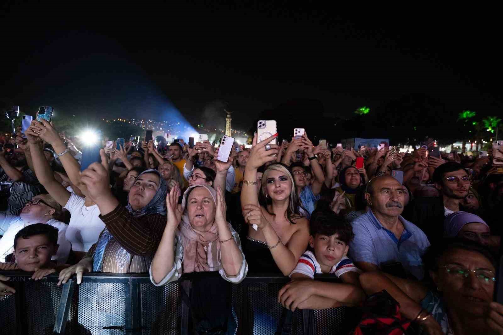 Bu yıl 93’üncüsü düzenlenen İzmir Enternasyonal Fuarı, Çim Konserleri’nde ünlü isimleri fuar ziyaretçileriyle buluşturmaya devam ediyor. İzmir’in kurtuluşunun 102’inci yılı olan 9 Eylül Pazartesi gününe kadar devam edecek Çim Konserleri’nde sevilen sanatçı Mahsun Kırmızıgül sahne aldı. 19 yıl aradan sonra halk konserine çıkan sanatçıyı binlerce hayranı heyecanla bekledi.
