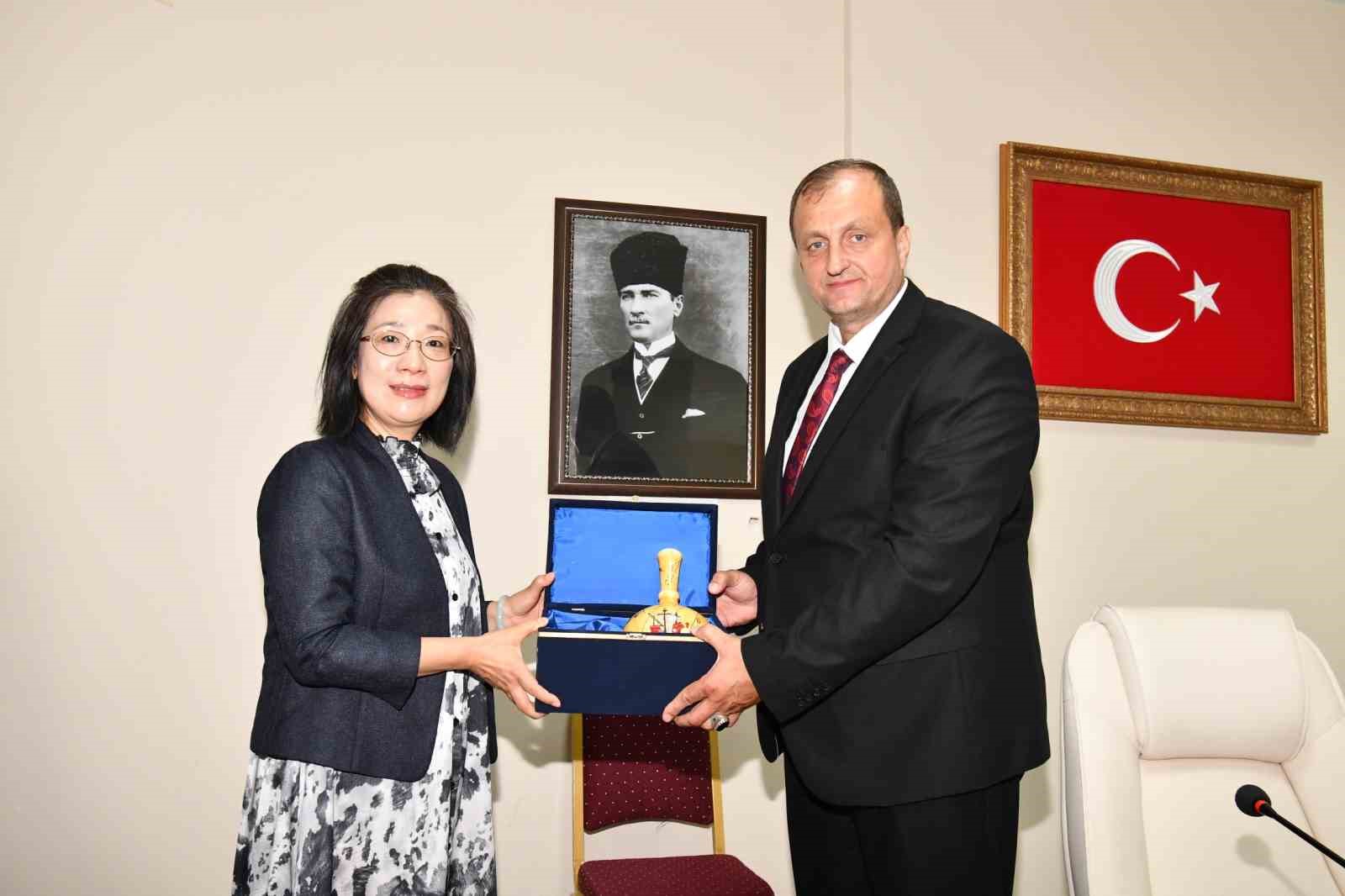 İZNİK BELEDİYESİ’NİN ÇİN DE BULUNAN SERAMİK ÜRETİMİYLE ÜNLÜ KARDEŞ ŞEHRİ JİNGDEZHEN’DEN GELEN HEYET BELEDİYE BAŞKANI KAĞAN MEHMET USTA İLE BİR ARAYA GELDİ.