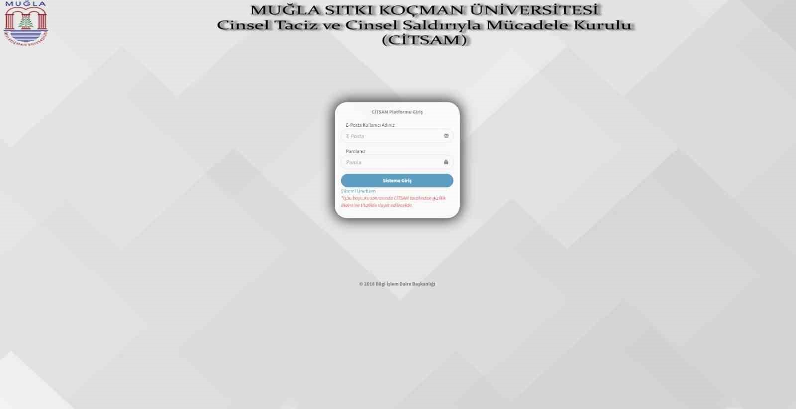 Şikayet başvuruları için ’citsam.mu.edu.tr’ adresinden üniversite kimlik bilgileriyle giriş yapıldığı zaman, konu ile ilgili tüm detayları kolaylıkla paylaşabilecekleri gizli bir sayfaya erişim sağlanıyor.