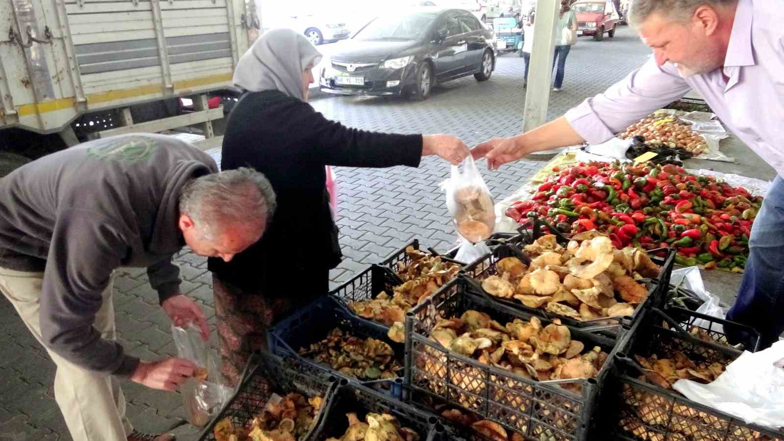 Muğla’nın Menteşe ilçesinde kurulan köy pazarında doğal mantar olan çıntarlar tezgahlarda yerini alırken, kilosu 150 TL’den satılıyor.