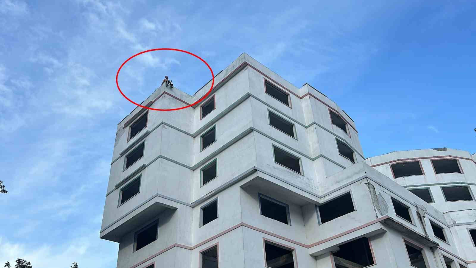 İnşaatın çatısında yürekleri ağza getiren genç, elinde bıçakla kollarına ve vücuduna zarar verdi. Müzakereci polis tarafından ikna edilerek aşağı indirilen genç, ambulansla Samsun Gazi Devlet Hastanesi’ne kaldırıldı.