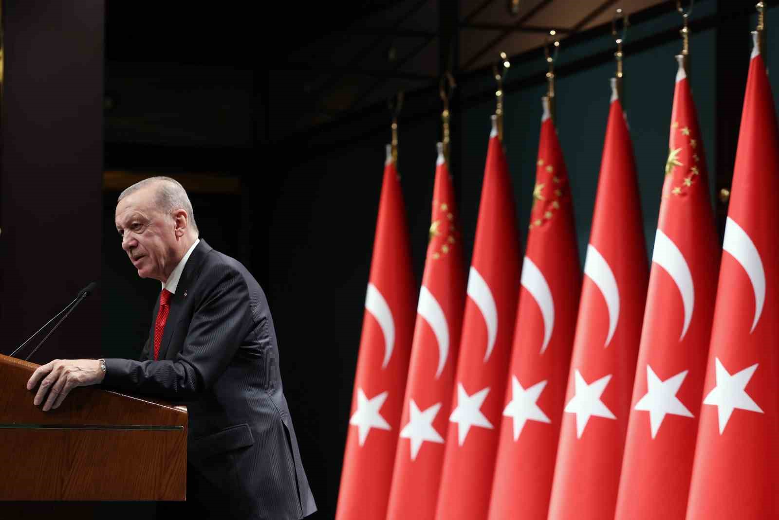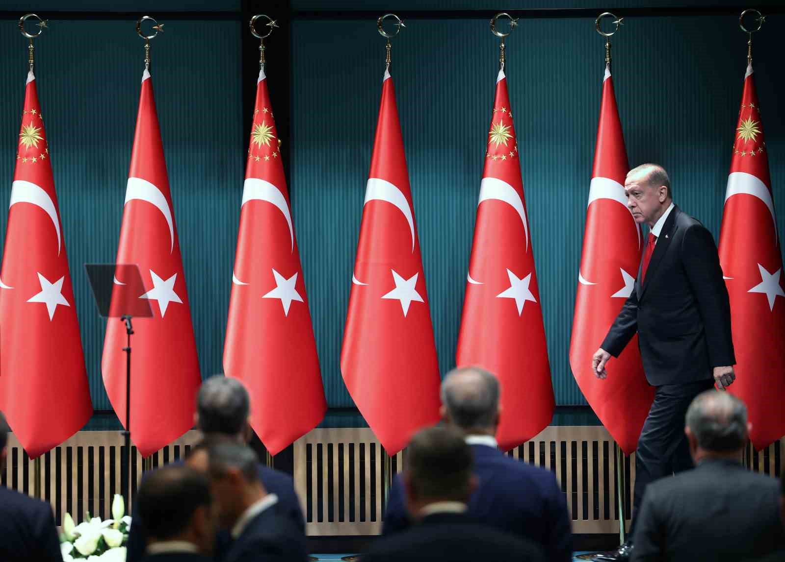 Cumhurbaşkanı Recep Tayyip Erdoğan, Kabine Toplantısı sonrası Millete Sesleniş konuşmasını gerçekleştirdi. Cumhurbaşkanı Erdoğan, Türkiye Yüzyılı’nın inşası için içeride ve dışarıda gece gündüz koşturmaya devam ettiklerini belirterek, ”Daha adil bir dünya, daha müreffeh bir Türkiye idealine ulaşıncaya kadar inşallah durmadan, dinlenmeden çalışacağız. Son kabine toplantısından bu yana iç siyasette ve dış politikada yine yoğun bir gündemle çalışmalarımızı sürdürürdük. 1 Ekim Salı günü Türkiye Büyük Millet Meclisimizin 28. Dönem 3’üncü yasama yılının açılışını yaptık. Meclis hitabımızda Türk demokrasisini darbe anayasası utancından bir an önce kurtararak, yeni sivil bir anayasayla buluşturma irademizi teyit ettik. 12 Eylül rejiminin silah dipçiği ile millete dayattığı mevcut anayasamızın yapılan onca revizyona rağmen Türkiye’ye ve demokrasisine dar geldiğini, Türkiye’nin ihtiyaçlarını karşılamaktan uzak olduğunu her geçen gün net bir şekilde görebiliyoruz. Ön yargıların esiri olarak ileri demokrasi hedefimize varılamayacağını herkesin idrak etmesini bekliyor, tüm siyasi partilerin yeni anayasa çağrımıza yapıcı cevap vermelerini samimiyetle temenni ediyoruz” açıklamasını yaptı.