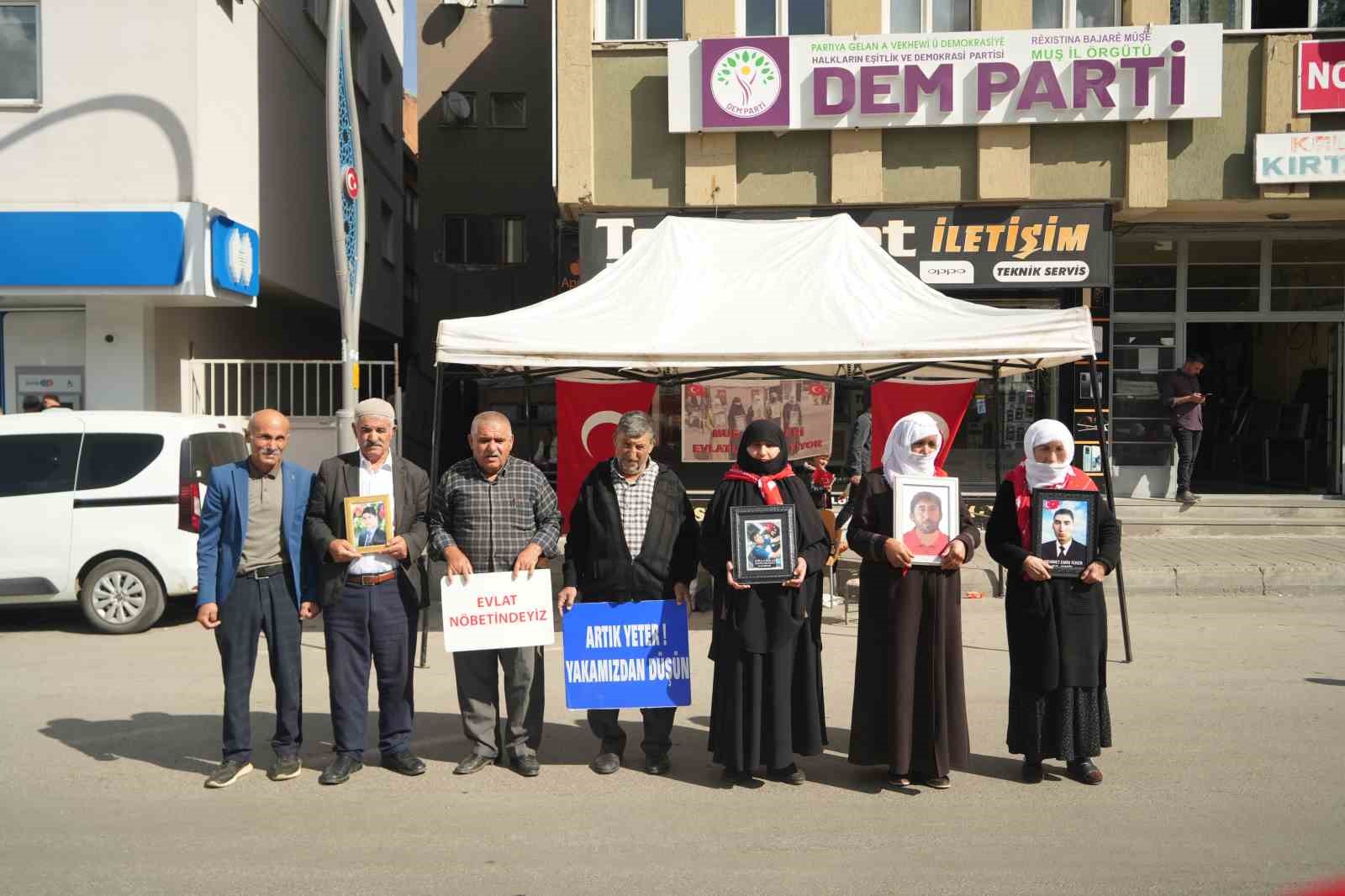 Çocuklarının terör örgütü PKK mensupları tarafından dağa kaçırıldığı iddiasıyla DEM Parti Muş İl Başkanlığı önünde oturma eylemi başlatan aileler, 167 haftadır kararlı bir şekilde evlat nöbetini sürdürüyor. Aileler, çocuklarının en kısa sürede güvenli bir şekilde evlerine dönmesini beklerken, toplumun da bu konuda destek olmasını istedi. Çocuklarına kavuşma ümidiyle her hafta çarşamba günü DEM Parti il binası önünde bir araya gelen aileler, “Anneler direniyor” ve “Yeter artık evlatlarımızı bırakın” pankartları açtı. Anne ve babalar, yıllardır hasretle bekledikleri çocuklarına teslim olmaları için çağrıda bulundu.