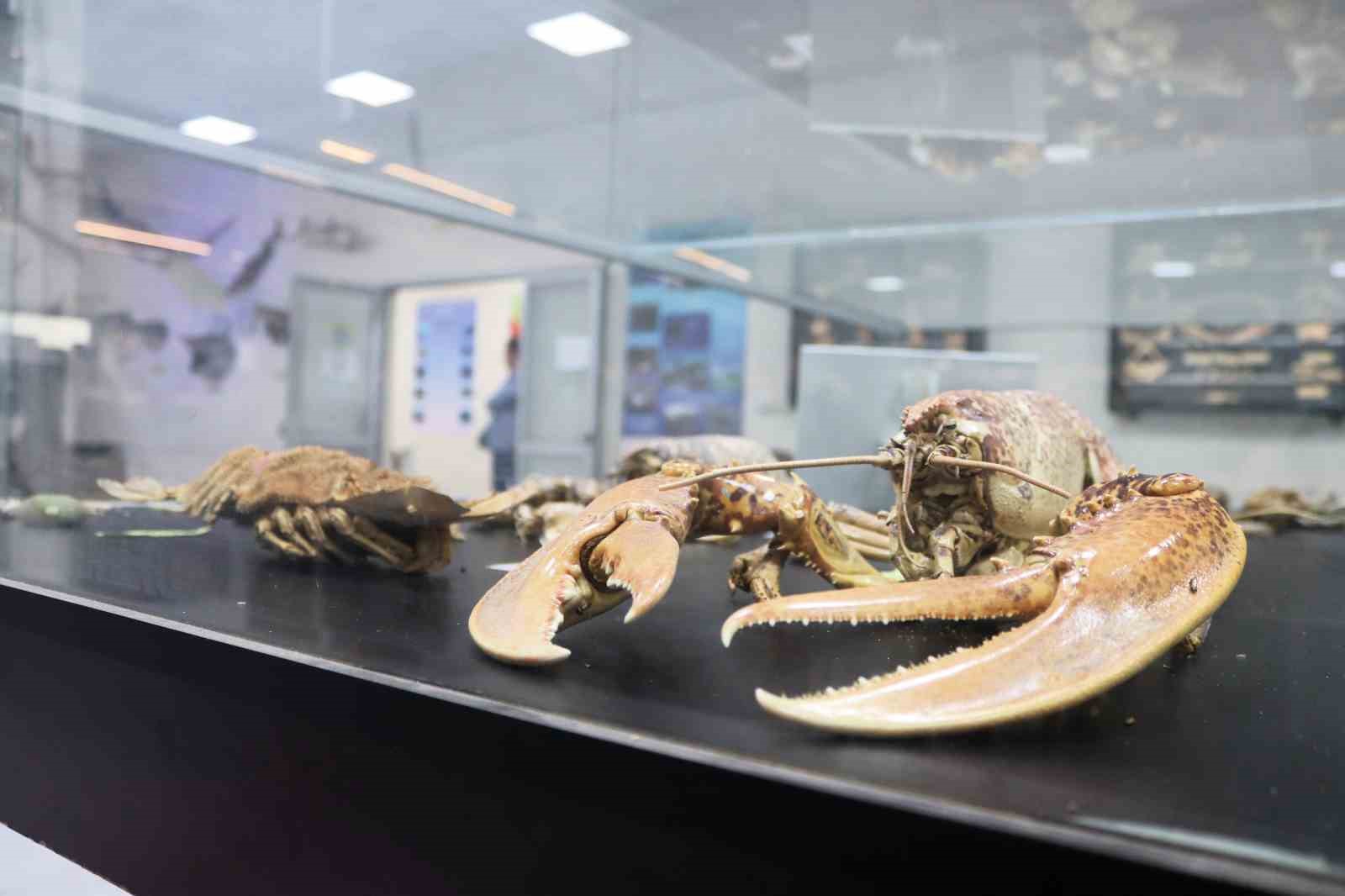 İZMİR KATİP ÇELEBİ ÜNİVERSİTESİ (İKÇÜ) DENİZ CANLILARI KOLEKSİYON MERKEZİ’NDE ARALARINDA NADİR GÖRÜLEN VE NESLİ TÜKENME TEHLİKESİ ALTINDA OLAN CANLILARIN DA YER ALDIĞI 400’ÜN ÜZERİNDE TÜR, TAHNİT YÖNTEMİ UYGULANARAK SERGİLENİYOR.