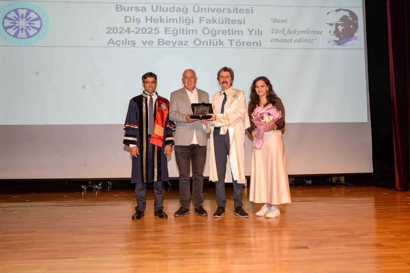 Açılışta konuşan BUÜ Rektörü Prof. Dr. Ferudun Yılmaz, yeni dönemin herkese hayırlı olması temennisinde bulundu. Bu dönem itibariyle 50. Kuruluş yıldönümlerini kutlamaya başlayacaklarını belirten Prof. Dr. Ferudun Yılmaz; “Üniversitemiz yarım asırlık bir çınar oldu. Türkiye’deki 23 araştırma üniversitesi arasında yer alıyoruz. Bu anlamda öğrencilerimizin iyi bir üniversiteye geldiklerini söyleyebiliriz. Diş Hekimliği Fakültemiz de kampüsümüzdeki en genç fakültedir. Henüz 5 yaşına yeni girdi. Mezunlarımızı bu yılın sonunda vermeye başlayacağız. Fakülte binamızın inşaatı devam ediyor. Son derece nitelikli, modern ve sağlam bir altyapıya sahip fakülte binası yapılıyor. Bu anlamda bizlere katkısını esirgemeyen ve ciddi bağışlarda binanın yapılmasına vesile olan iş insanı Sayın İbrahim Gülmez beye herkesin önünde bir kez daha teşekkür etmek istiyorum” diye konuştu.