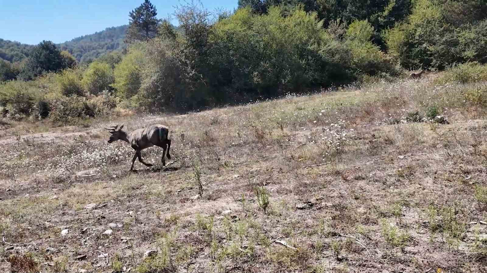 Doğa Koruma ve Milli Parklar 2. Bölge Bursa Şube Müdürlüğü sorumluluk sahasındaki 2 kızıl geyik, tedavilerinin ardından doğaya salındı. Geyiklerin ormanın derinliklerine koşuşları kameralara yansıdı.