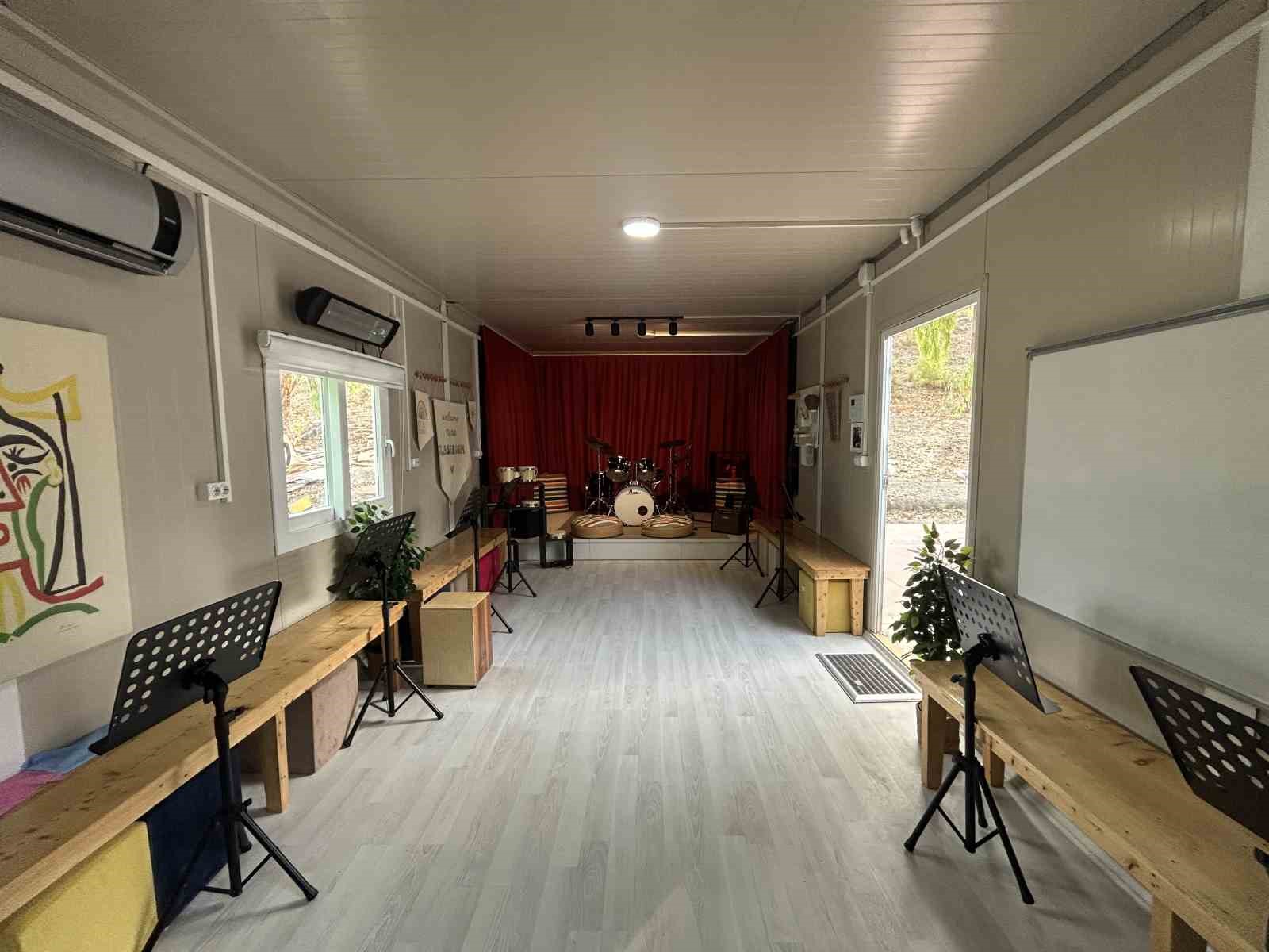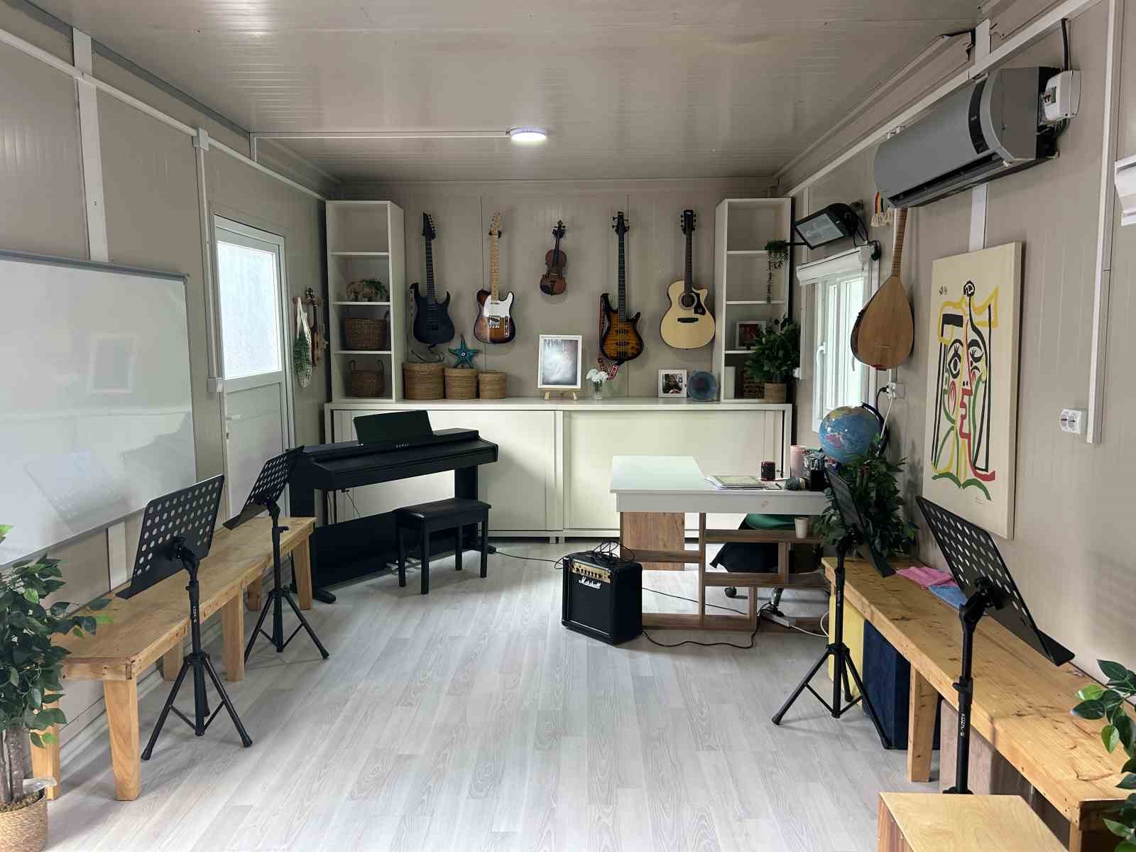 Müzik atölyesinde eşiyle birlikte emek harcayan Doktor İdil’in görümcesi Funda Çakmak, “Projelerimizden bir tanesini de İdil adına yapmaya karar verdik, İdil çocukları çok seven ve çocukların çok yönlü yetişmesi gerektiğine inanan bir kızdı. Ondan dolayı müzik atölyesini açmaya karar verdik. Üç ay boyunca eşim, ben ve müzik öğretmenimiz Mehmet Koçgöz’le birlikte bu atölyeyi tamamlamaya çalıştık ve açılışımızı da gerçekleştirdik. İdil benim eşimin ikizi onların doğum günü gecesinde oturduğumuzda on güne kadar doçentliği açıklanacağını söylemişti ve biz dört gözle bunu bekliyorduk. Kendisi göz doktoruydu üniversite hastanesinde ve depremde kaybettiğimizi öğrendik, on gün sonra doçentliği açıklandı. Doçent Doktor Ayşe İdil Çakmak Müzik Atölyesi aslında onun göremediği ama herkesin bilmesini istediğimiz bir atölye ismi oldu. Çocukların profesyonel müzik eğitimi alabileceği bir atölye yaptık. Olabildiğince tüm aletleri koymaya çalıştık. Müzik öğretmenimiz bizi bu konuda yönlendirdi ve gerçekten profesyonel bir müzik atölyesi oldu. Çocuklar buraya geldiğinde bambaşka bir dünya olsun diye çok emek ettik ve biz de çok heyecanlıyız açıkçası burası için. Çocuklar görünce çok mutlu oldular” dedi.