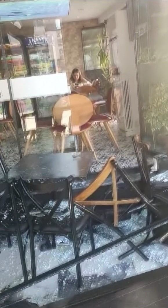 BURSA'DA SÜRÜCÜSÜNÜN KONTROLÜNDEN ÇIKAN OTOMOBİL, KAFEYE DALDI. O SIRADA KAFEDE