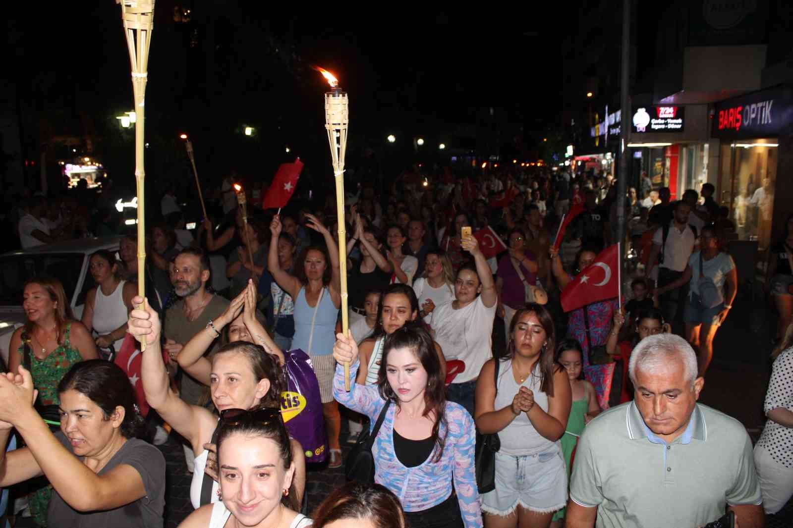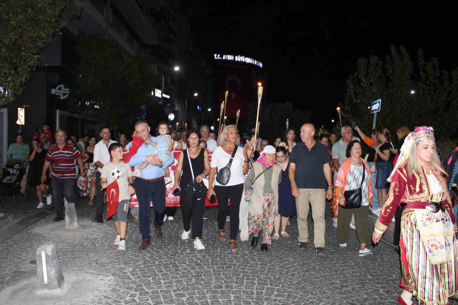 Efeler Belediyesi, fotoğraf sergisinin ardından akşam 20.30’da düzenlediği fener alayı ile Efeler’de 7 Eylül ruhunu tüm gün yaşattı. Taş Köprü’de toplanan Efelerli vatandaşlar, ellerine aldıkları meşaleler ve Türk bayraklarıyla birlikte 7 Eylül’ü kutladı. Taş Köprü’den Adnan Menderes Bulvarı’na ve Kıbrıs Caddesi üzerinden Cumhuriyet Caddesi istikametinde yürüyen kalabalık marşlar eşliğinde tekrar Atatürk Kent Meydanı’na ulaştı. Araba ve motor gruplarının da katılım gösterdiği fener alayının en dikkat çeken grubu ise atlı spor kulübünün at üzerinde yürüyüşü oldu. Yoğun katılımın olduğu fener alayında vatandaşlar Aydın’ın kurtuluşunu coşkuyla kutladı.