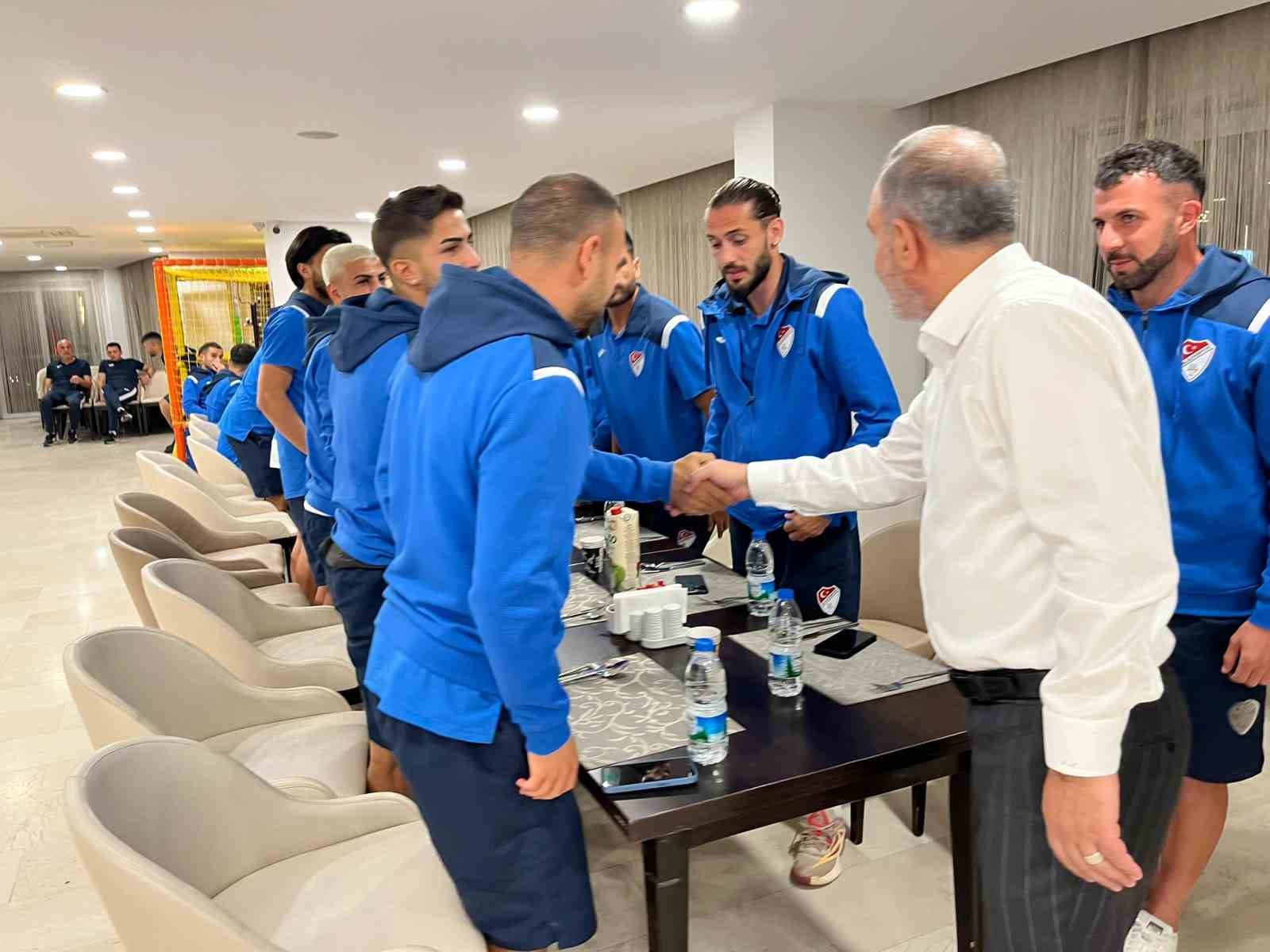 Elazığspor’u kamp yaptığı otelde ziyaret eden Elazığ TSO Başkanı İdris Alan, futbolculara galibiyet primi sözü verdi.