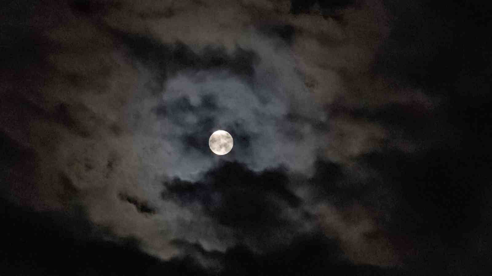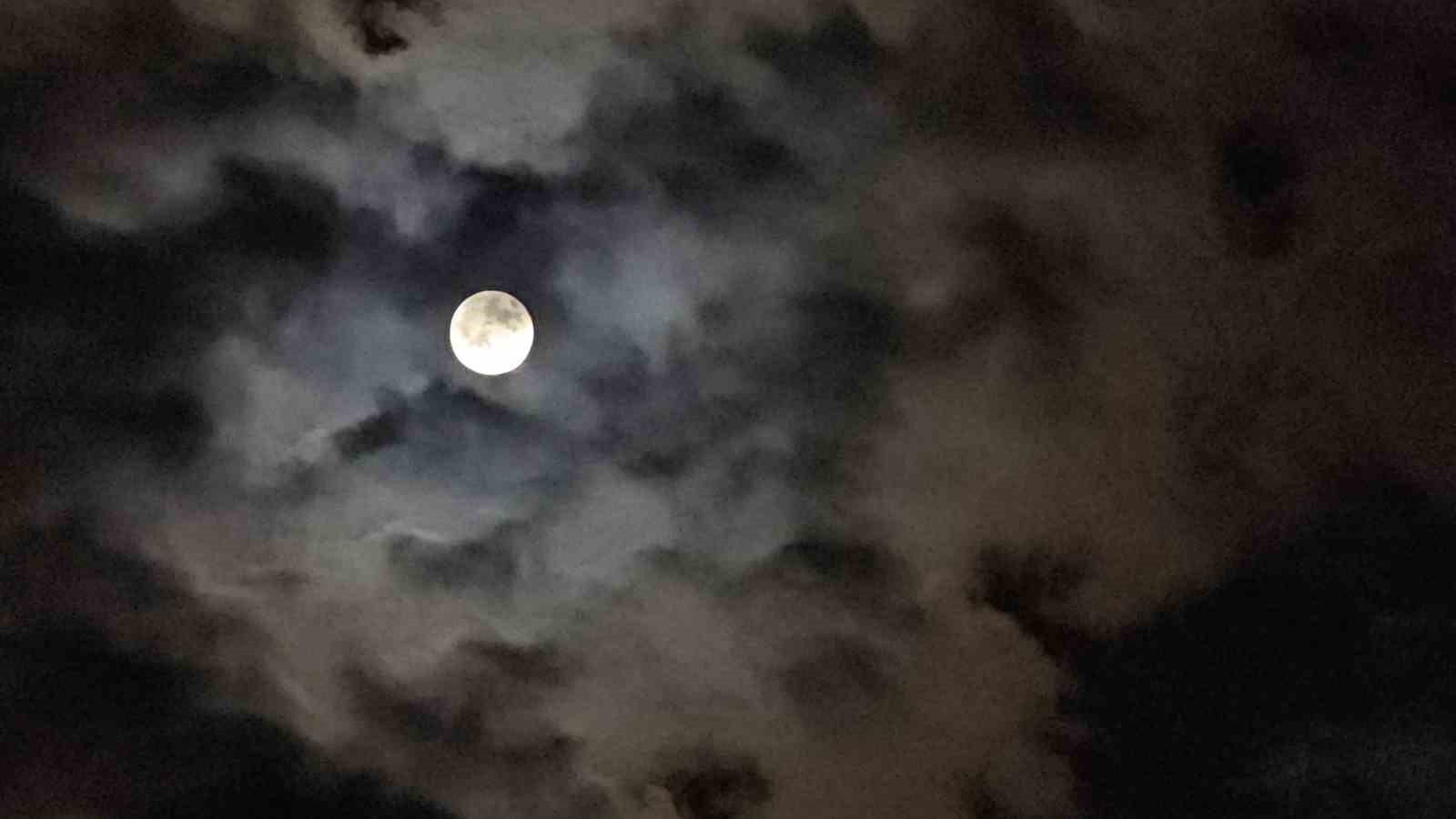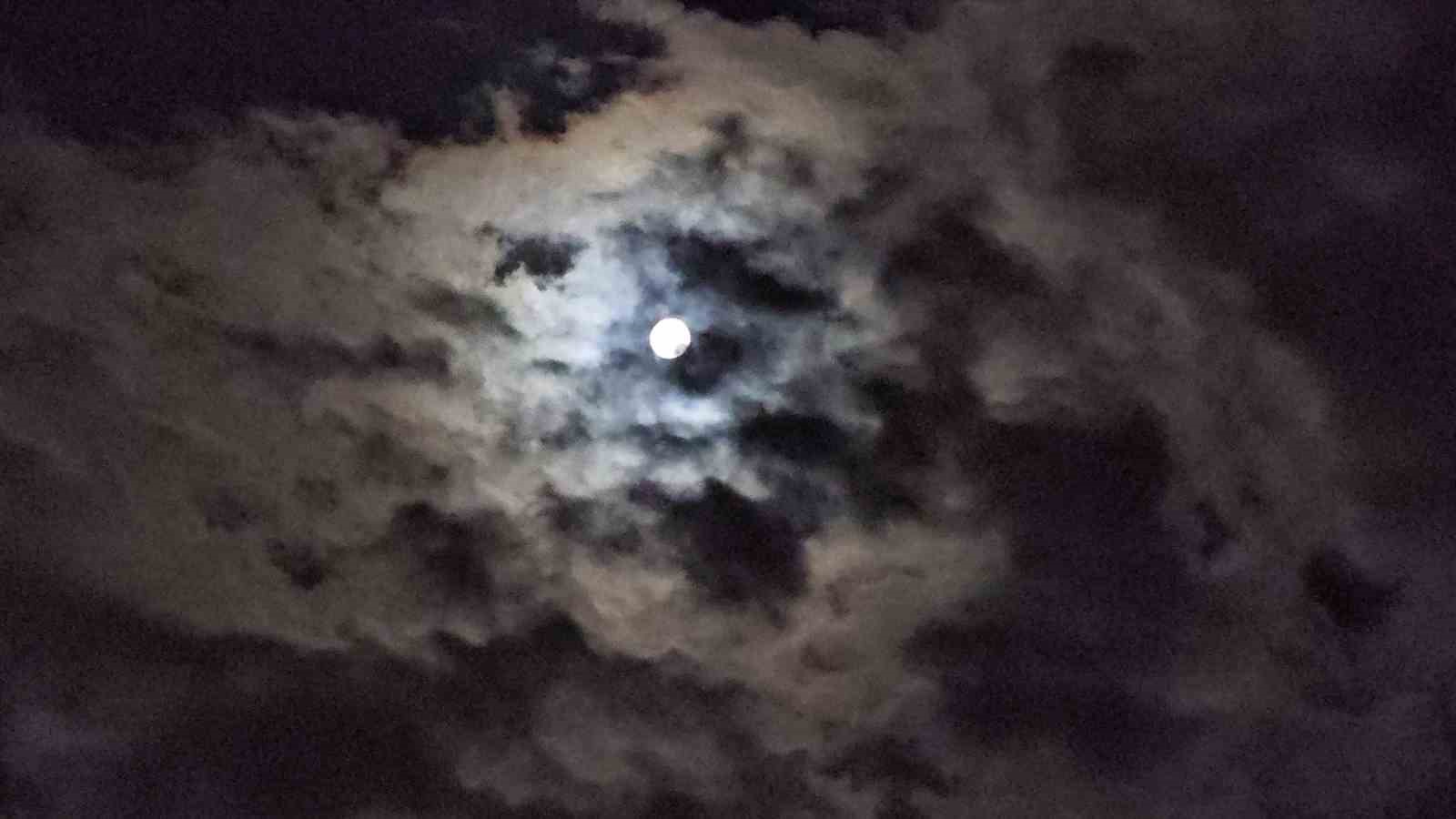 Elazığ’da Ay’ın gökyüzündeki bulutlar arasındaki geçişi hayranlık uyandırdı.