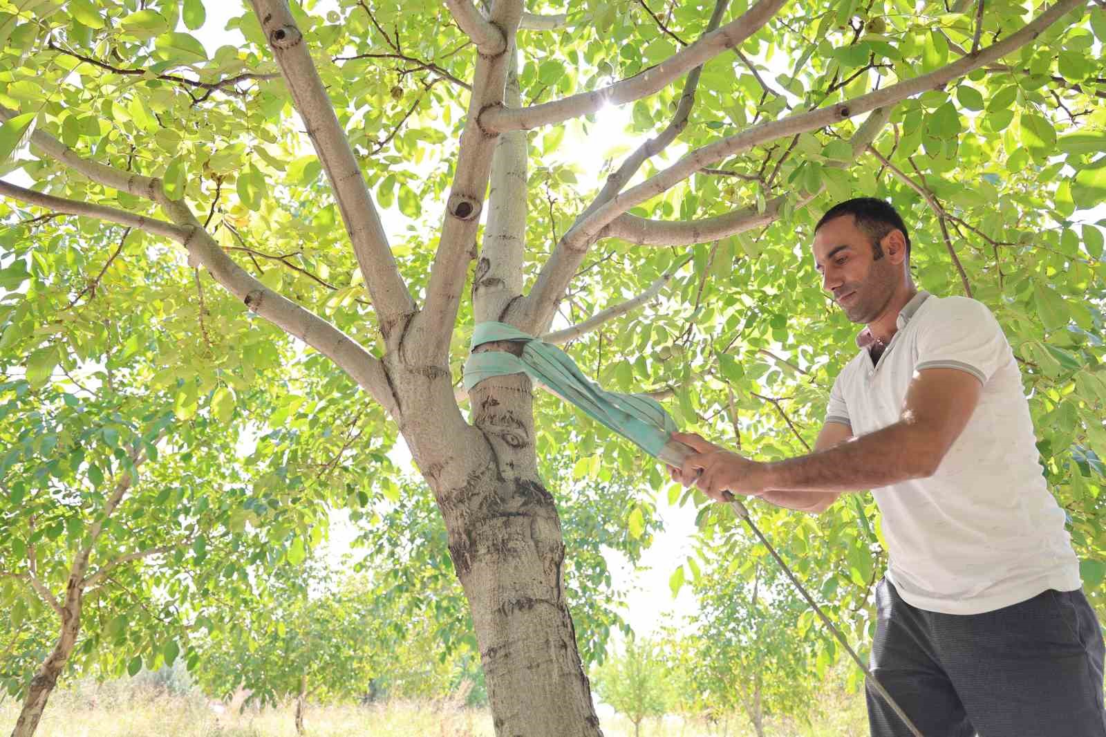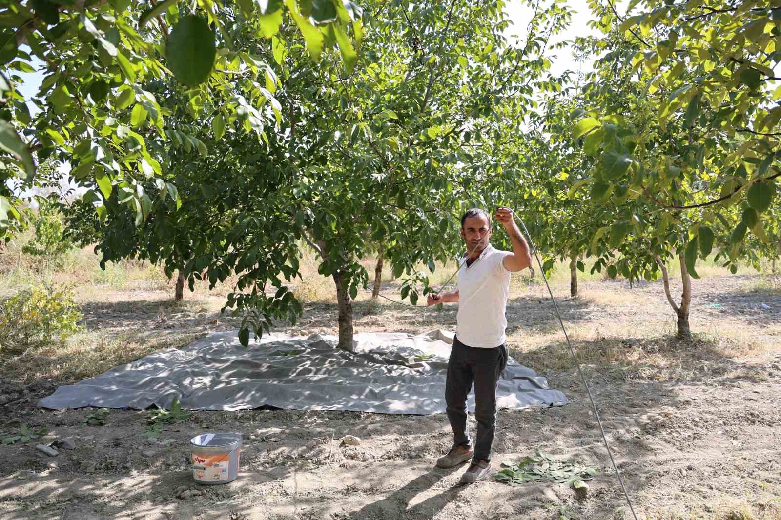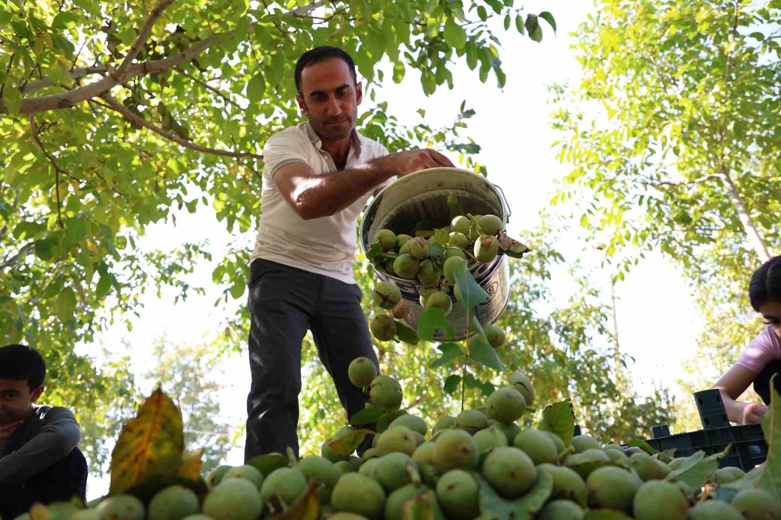 Sonbaharın gelmesi ve havaların soğumaya başlamasıyla birlikte Elazığ’da ortalama 130 bin ceviz ağacında hasat başladı. Bu çerçevede Yurtbaşı beldesinde ceviz ağaçları bulunan Yasin Akyol, ailesiyle birlikte mesaiye başladı. Ailesiyle birlikte sabahın erken saatlerinde kalkan Akyol, cevizleri makine yardımıyla silkeliyor. Üzerinde kalan cevizler ise çubuk yardımıyla düşürülüyor. Ardından toplanan cevizler soyuluyor ve kurutmaya bırakılıyor. Cevizlerin yaş hali 120 lira kuru hali ise 150 liradan satışa sunuluyor.