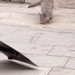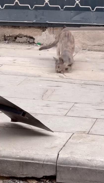 Elazığ merkezde bulunan İstasyon Cadde’sinde, kedilerin fare ile oynadığını gören bir kişi, cep telefonu ile bu anları kaydetmeye başladı. Kedi, kaçmak isteyen fareye izin vermezken, diğer bir kedinin gelmesiyle birlikte fareyi ağzına alıp ortadan kayboldu. O anlar ise bir vatandaşın cep telefonu kamerasına yansıdı.