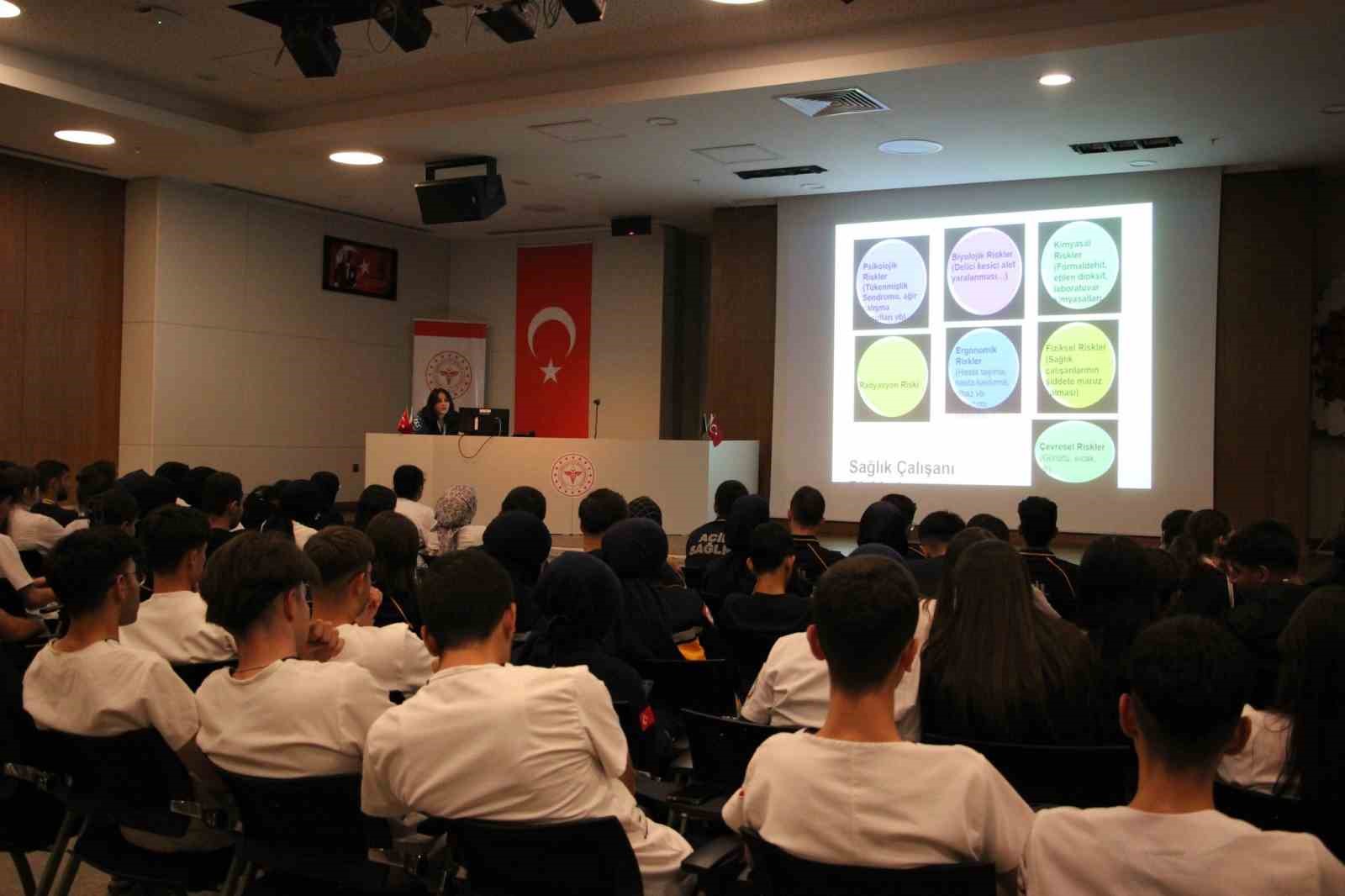 Elazığ Fethi Sekin Şehir Hastanesinde görev yapan stajyer öğrencilere yönelik delici ve kesici alet yaralanmaları ile el hijyeni ve izolasyon figürleri konusunda eğitim verildi.