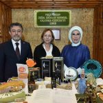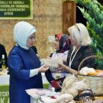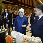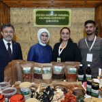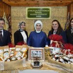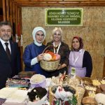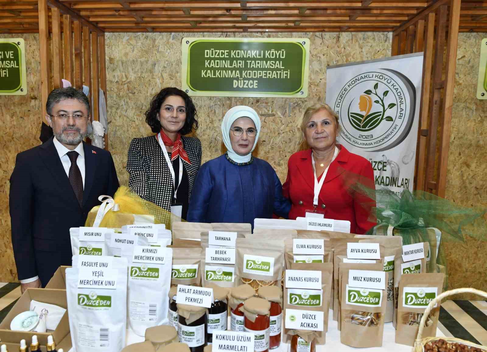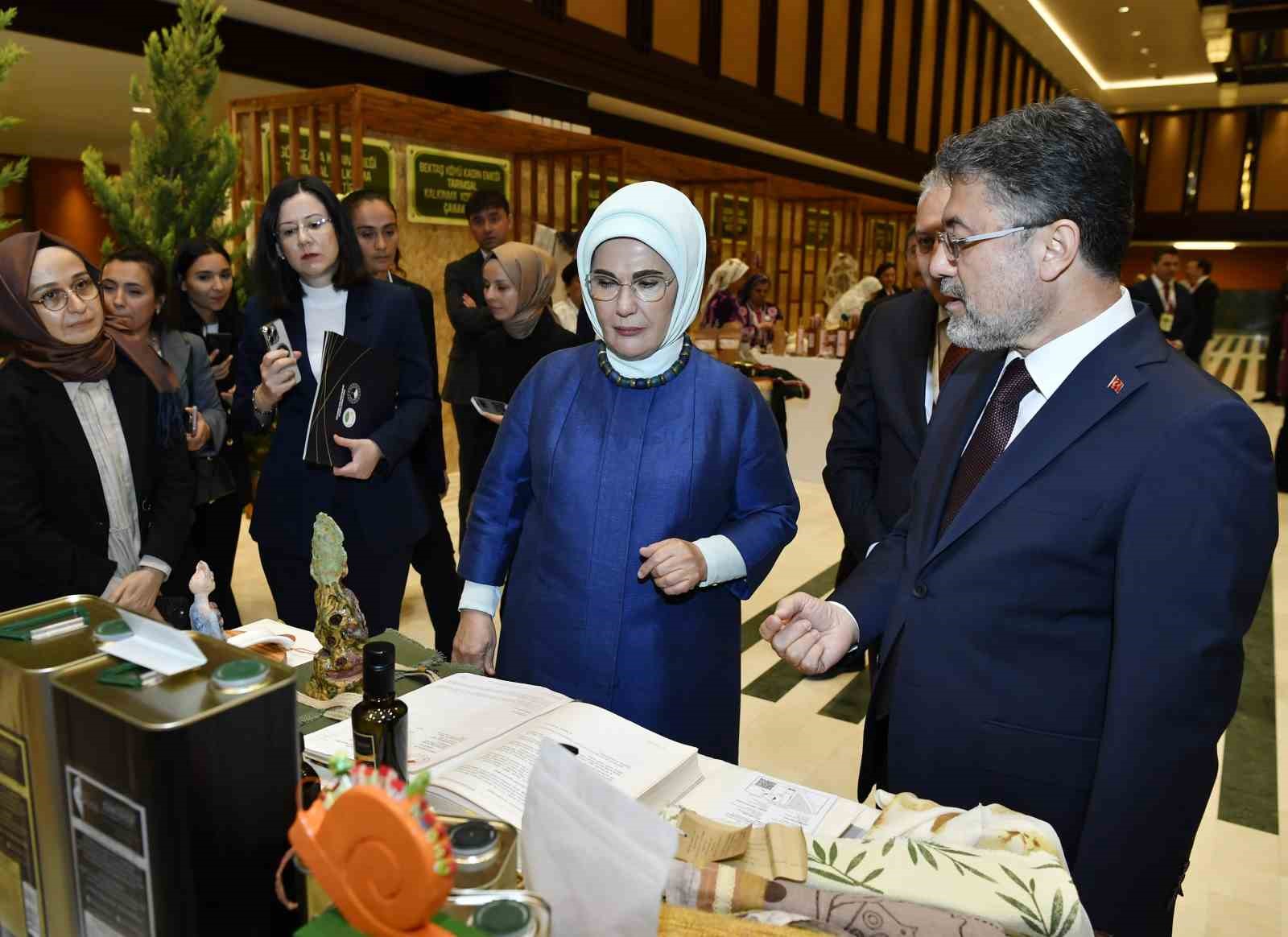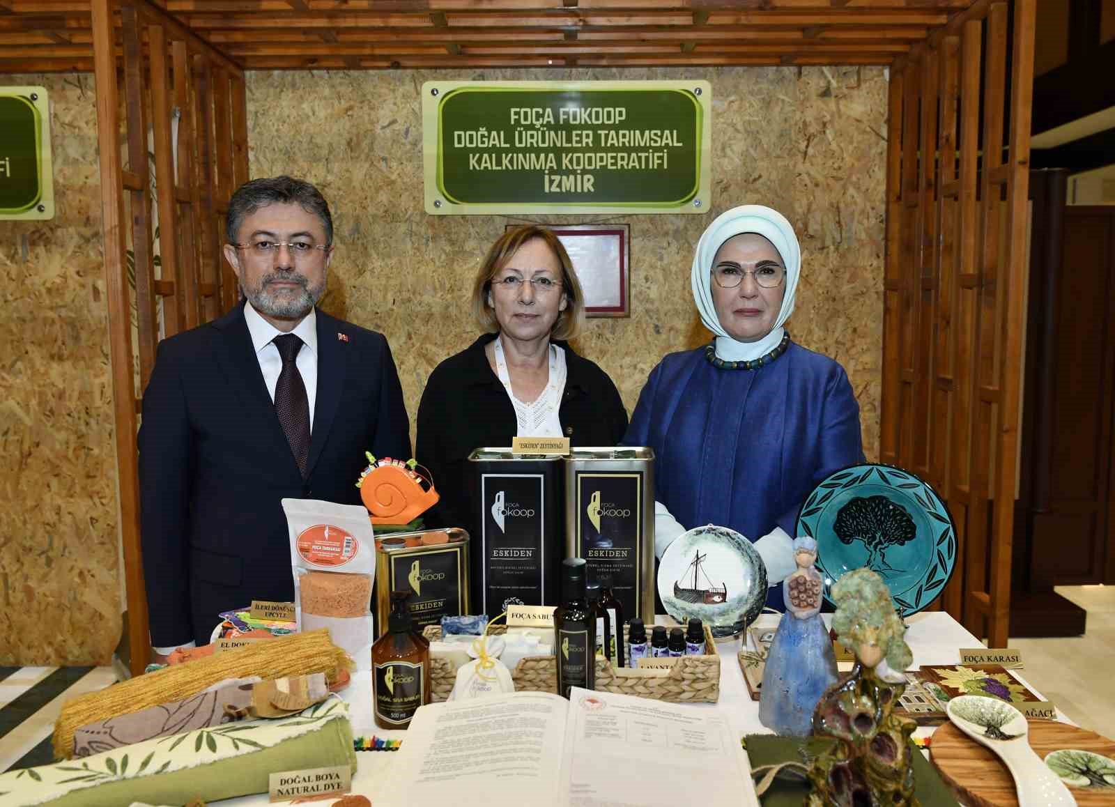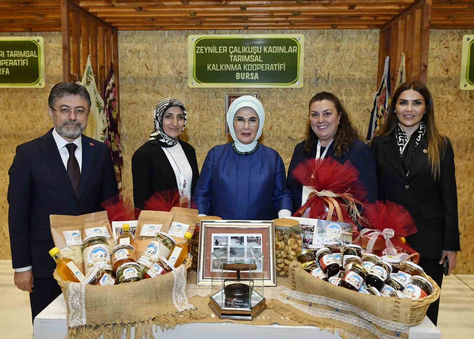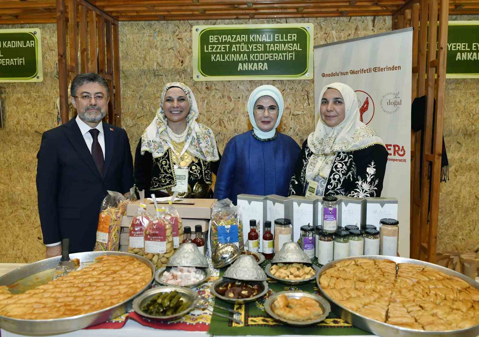 Emine Erdoğan, Bakan Yumaklı ile 15 Ekim Dünya Kadın Çiftçiler Günü dolayısıyla Türkiye’nin çeşitli bölgelerinden 18 kadın kooperatifince fuaye alanında açılan stantları gezdi.
