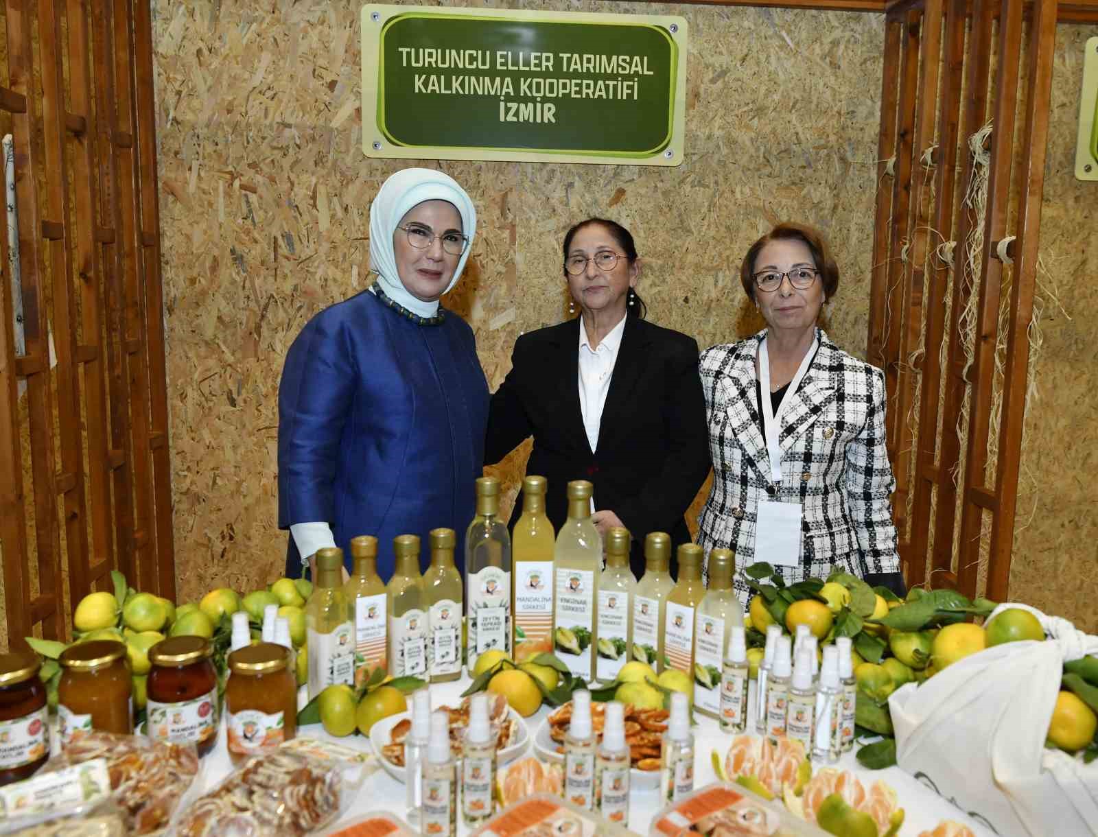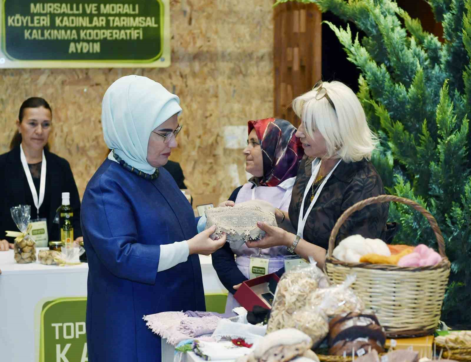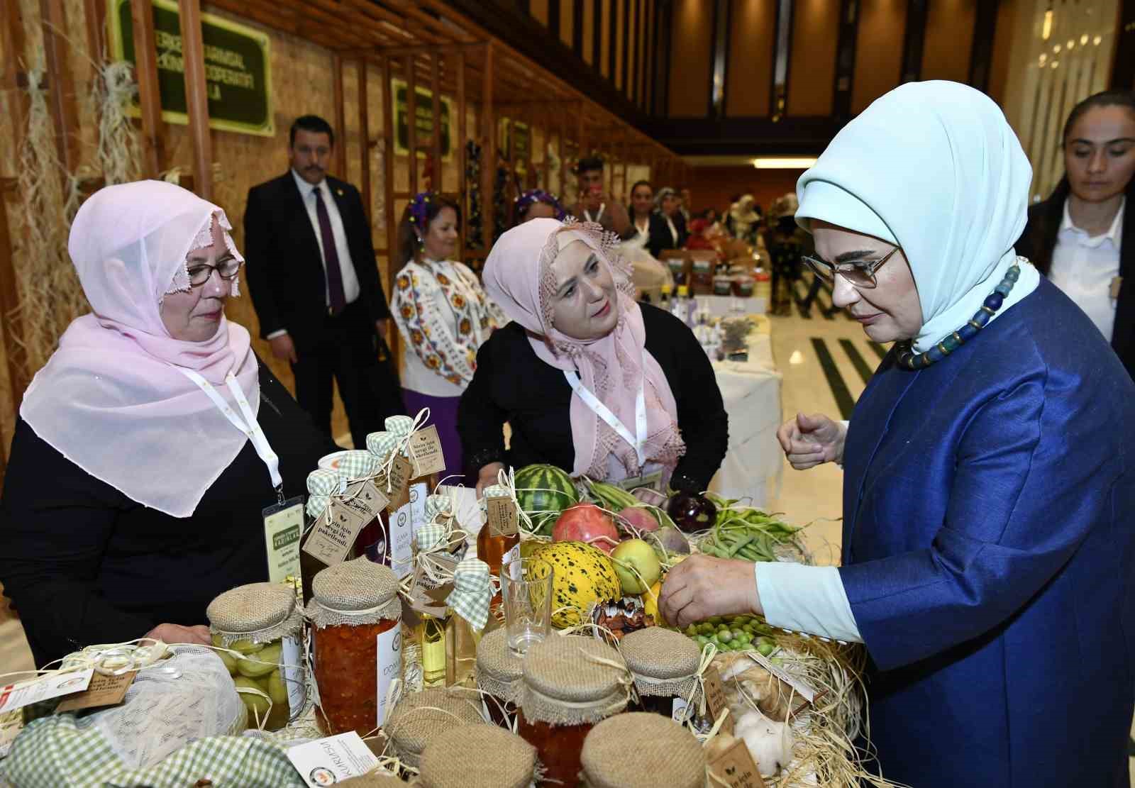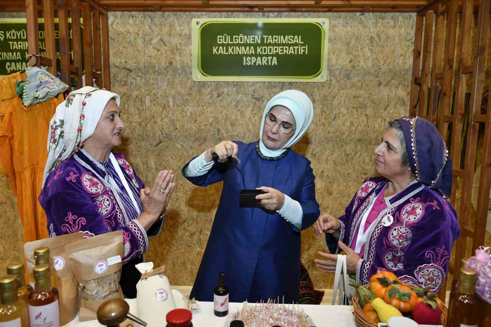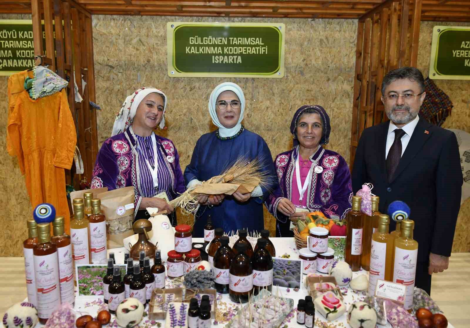 Emine Erdoğan, kadın çiftçilerin ürettiği ürünlerin sergilendiği stantları gezdi
