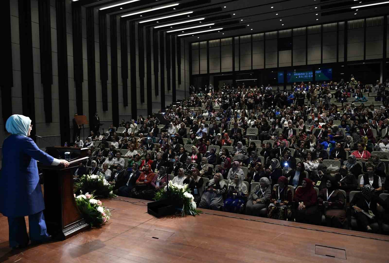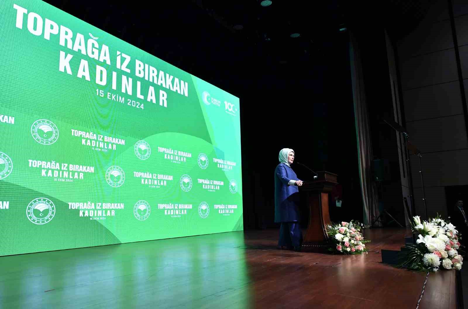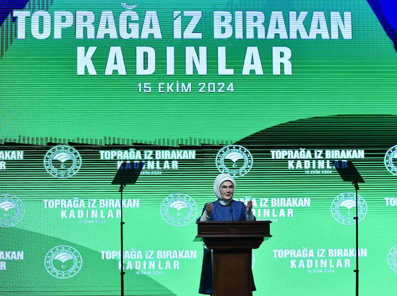 Kadınla toprak arasında emeğe dayalı uzun bir geçmiş olduğunu vurgulayan Emine Erdoğan, “Anadolu toprağı nasıl bereketliyse, Anadolu kadını da çalışkandır, üretkendir. Tüm dünyada olduğu gibi ülkemizde de gıda üretiminin yarıdan fazlası kadınların ellerinde gerçekleşiyor. Sizler, bir yandan vatanınızı doyurarak milletimize analık yapıyor diğer yandan henüz doğmamış evlatlarımızın hakkını gözetiyorsunuz” diye konuştu.