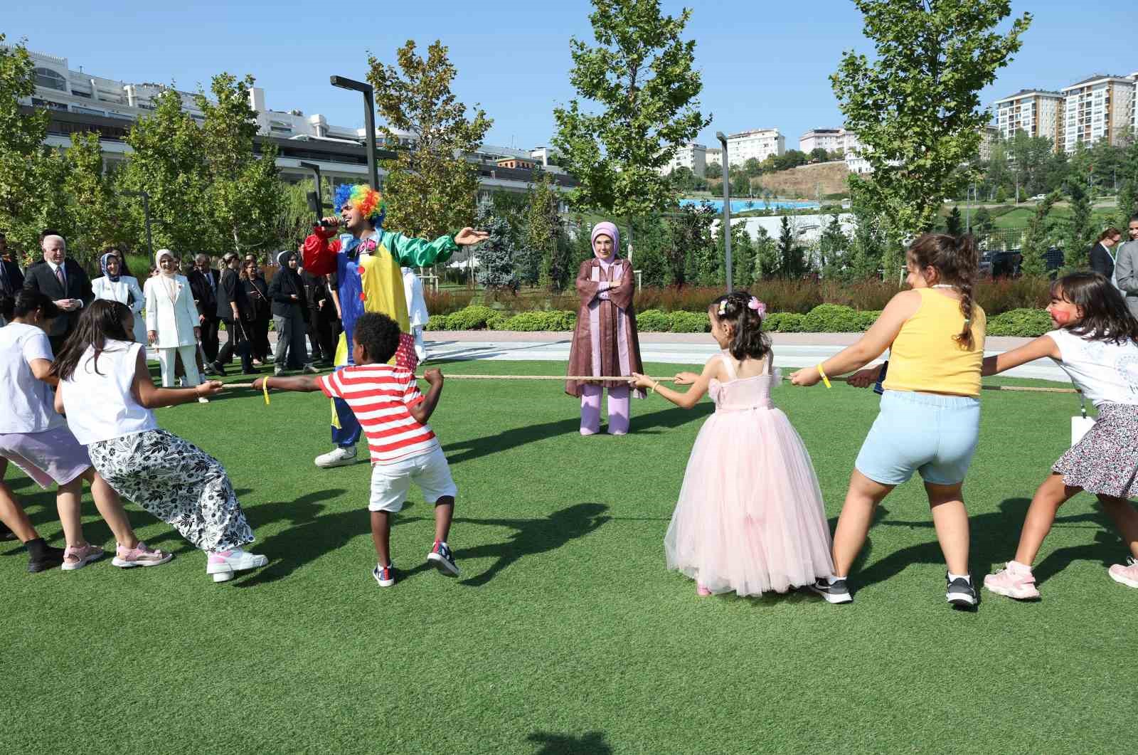 Programda, koruyucu aile yanında büyüyen ve konservatuarı bitirmesinin ardından müzik öğretmeni olarak atanan görme engelli Hatice Kaya’nın müzik dinletisi ile halk oyunları ekibinin gösterisini ilgiyle izleyen Erdoğan, “Gerçekleştirdiği müzik dinletisiyle yüreklerimize şifa olan Hatice kızımızı ve özel gösterileri için halk oyunları ekibini tebrik ederim” dedi. Erdoğan, konuşmasının ardından katılımcılarla “Biz büyük bir aileyiz” fotoğrafı çektirdi, etkinlik alanındaki çocukları ziyaret etti. Çocuklara patlamış mısır, patates kızartması ve kağıt helva dağıtan Erdoğan, çocukların halat çekme yarışmasını izledi.
