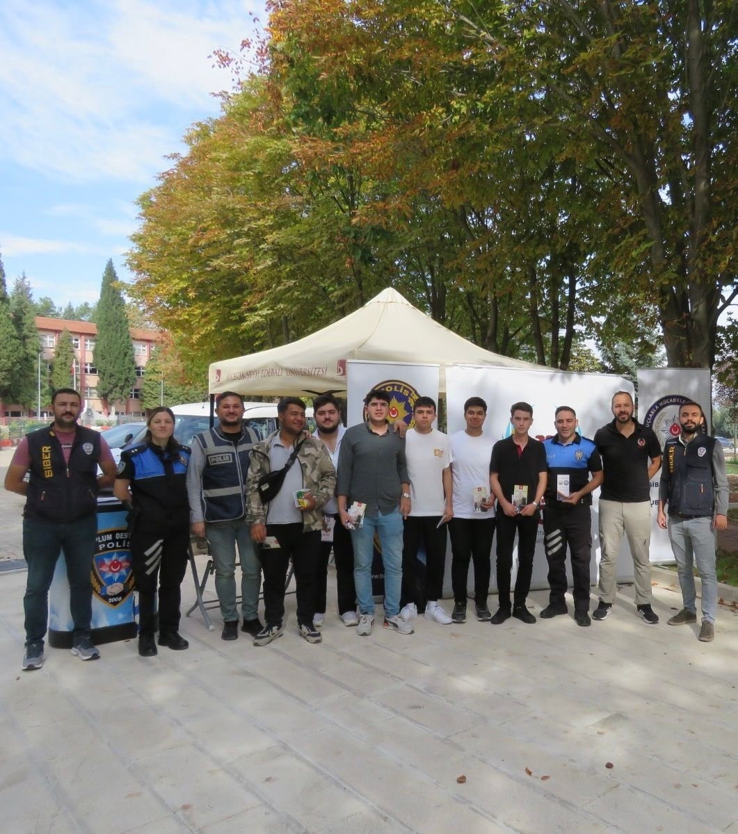 Bilecik İl Emniyet Müdürlüğü bağlı Terörle Mücadele Şube Müdürlüğü ekipler Şeyh Edebali Üniversitesinde öğrencileriyle “El Ele Güvenli Geleceğe” projesi kapsamında bir araya geldi. Ekipler üniversite öğrencilerini örgütlerin hedef kitlesi, eleman kazanma yöntemleri, doğru arkadaşlık, doğru bilgi konuları ve terör örgütleri hakkında bilgilendirdi. Standı ziyaret eden öğrencilere not defteri, kalem, broşür, kek ve meyve suyu ikramında bulunuldu.