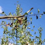 Erzincan’da elma ağacına çıkan yılan cep telefonuyla kaydedildi.