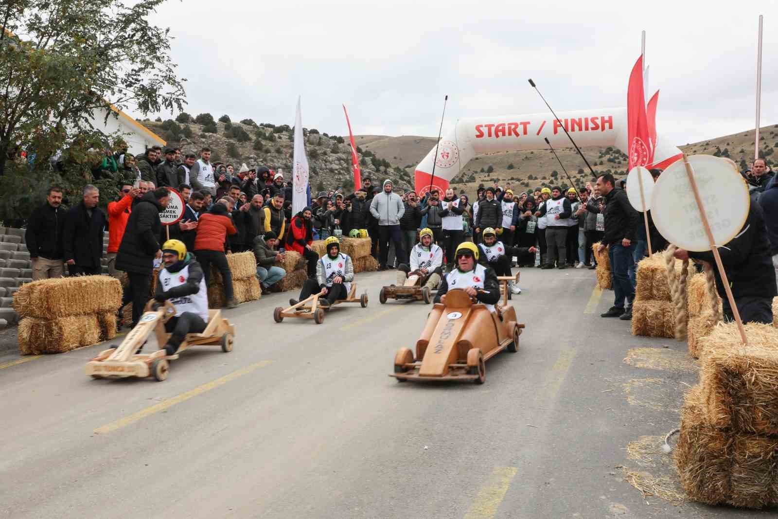 Kıl çorap ve kara lastik giyen yarışmacılar, kendi tasarladıkları tahta arabalarla 2 bin metrelik parkurda kıyasıya mücadele etti. ’Arabam tahtadan, inerim rampadan’ sloganıyla yapılan yarışlarda, toplam 30 kişi yarıştı. Yarışmacılar, gruplar halinde yapılan yarışlara kendi tasarımları olan ve sırma teli dışında metal aksamın yasak olduğu, birbirinden ilginç tahta arabalarla katıldı. Yarışmacıların, kıl çorap ve fren yapmak için de kullanılan, halk arasında ’kara lastik’ olarak bilinen lastik ayakkabı giydi. Saatte 60 kilometre hıza ulaşabilen tahta arabalar Ergan Dağı Kayak Merkezi’nde pistte renkli görüntüler oluşturdu.
